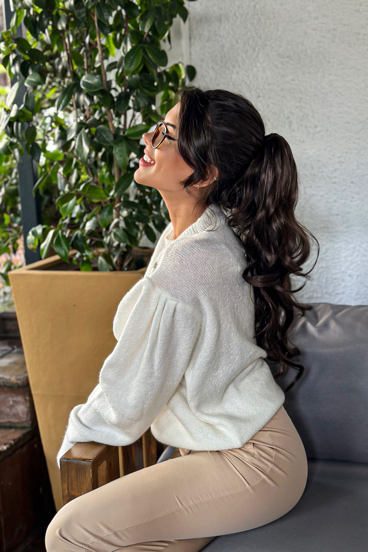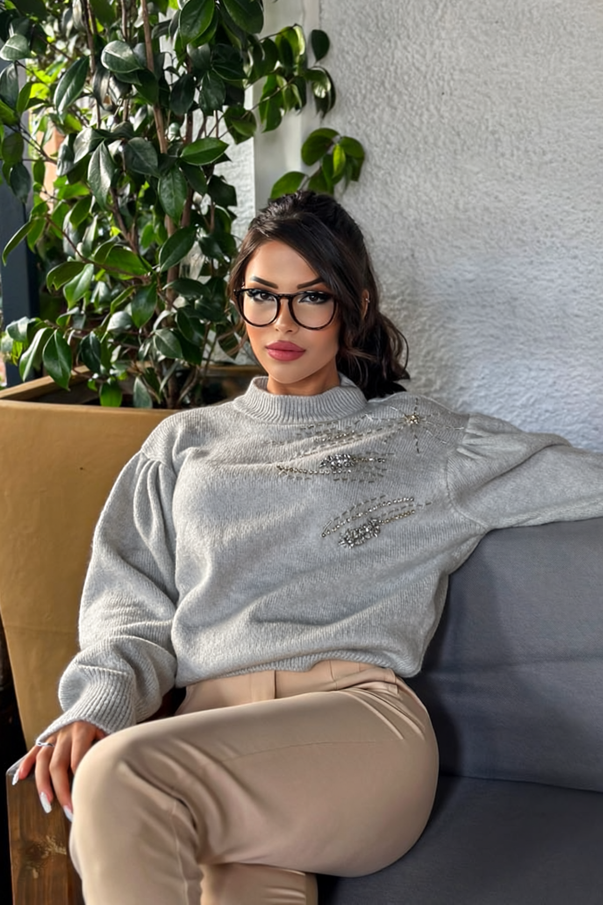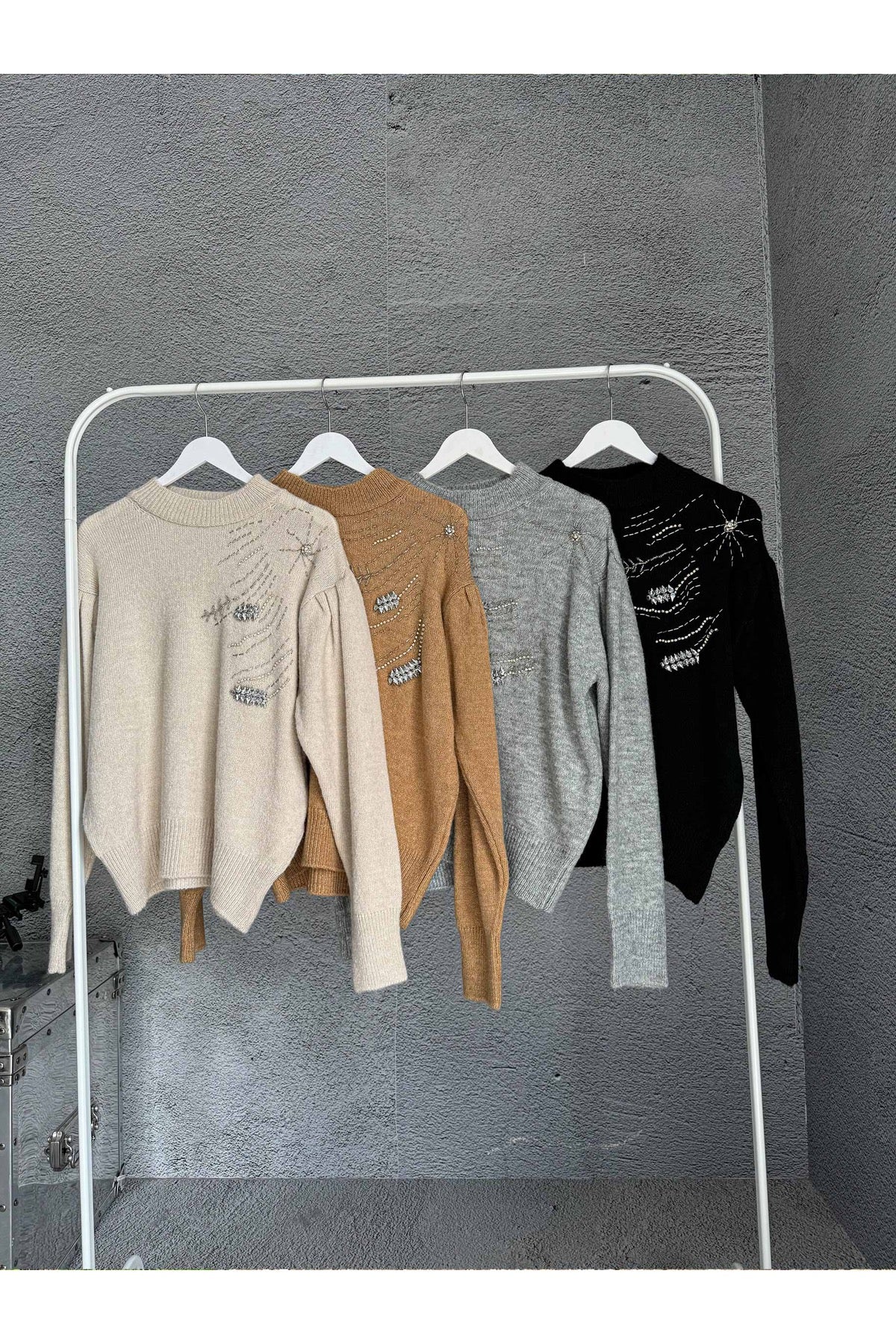 Boncuk İşlemeli Yarım Balıkçı Yaka Triko Kazak E-184