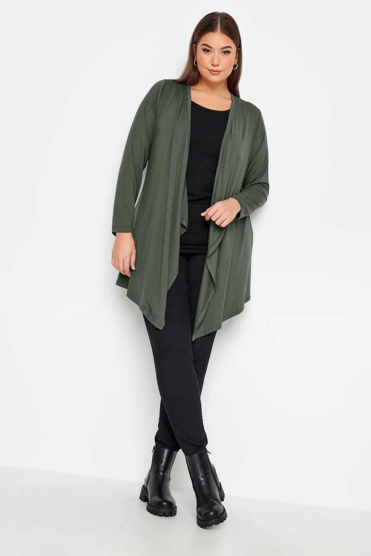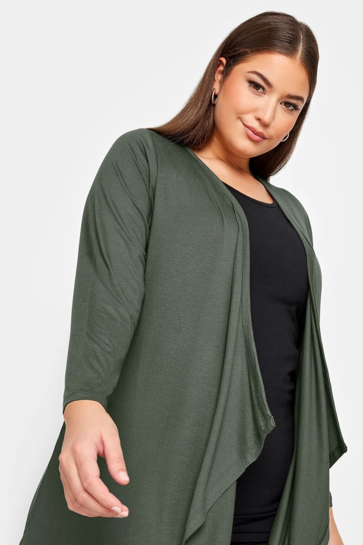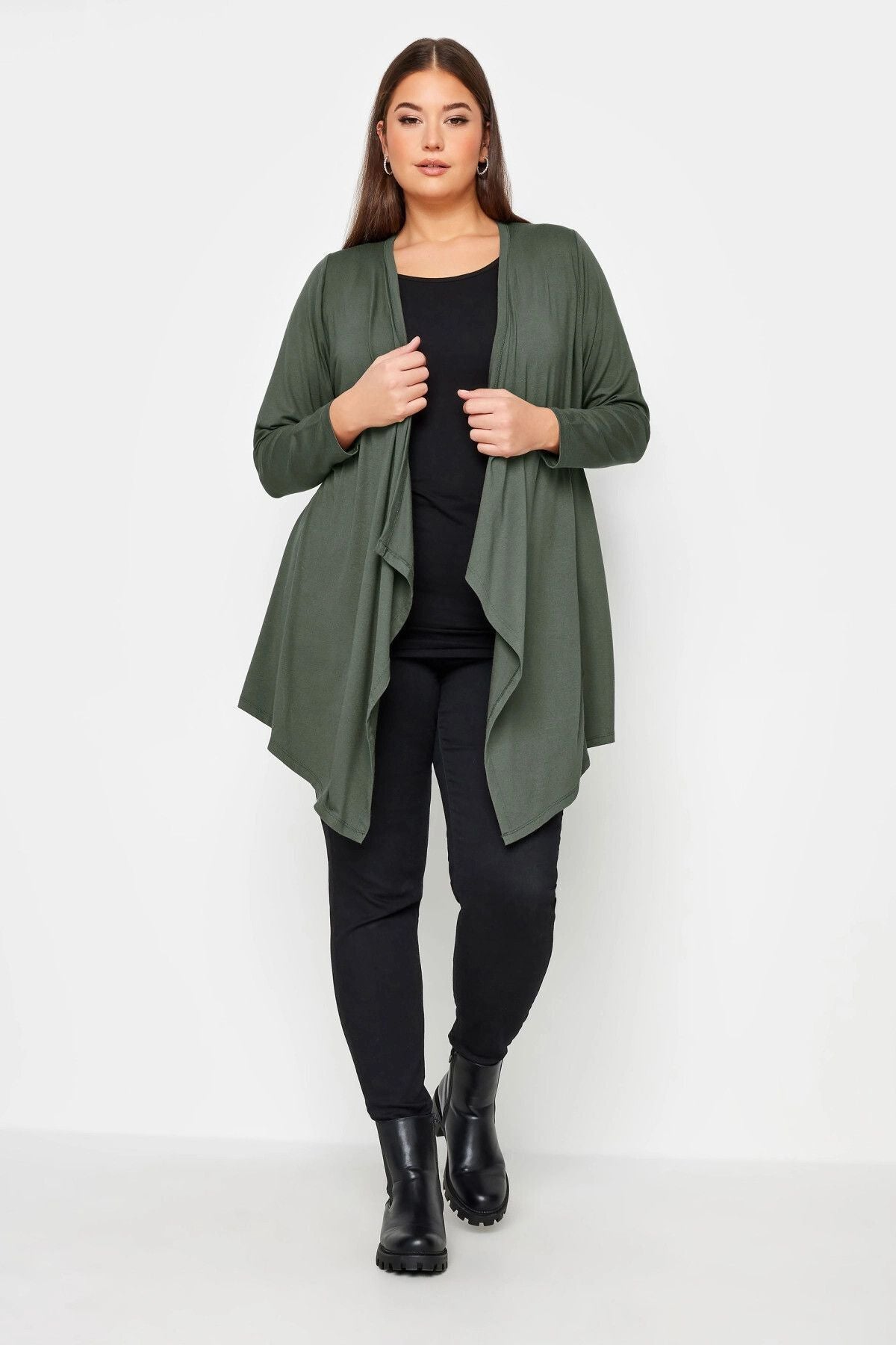 Büyük Beden Asimetrik Kesim Düğmesiz Salaş Uzun Kollu Hırka 321405