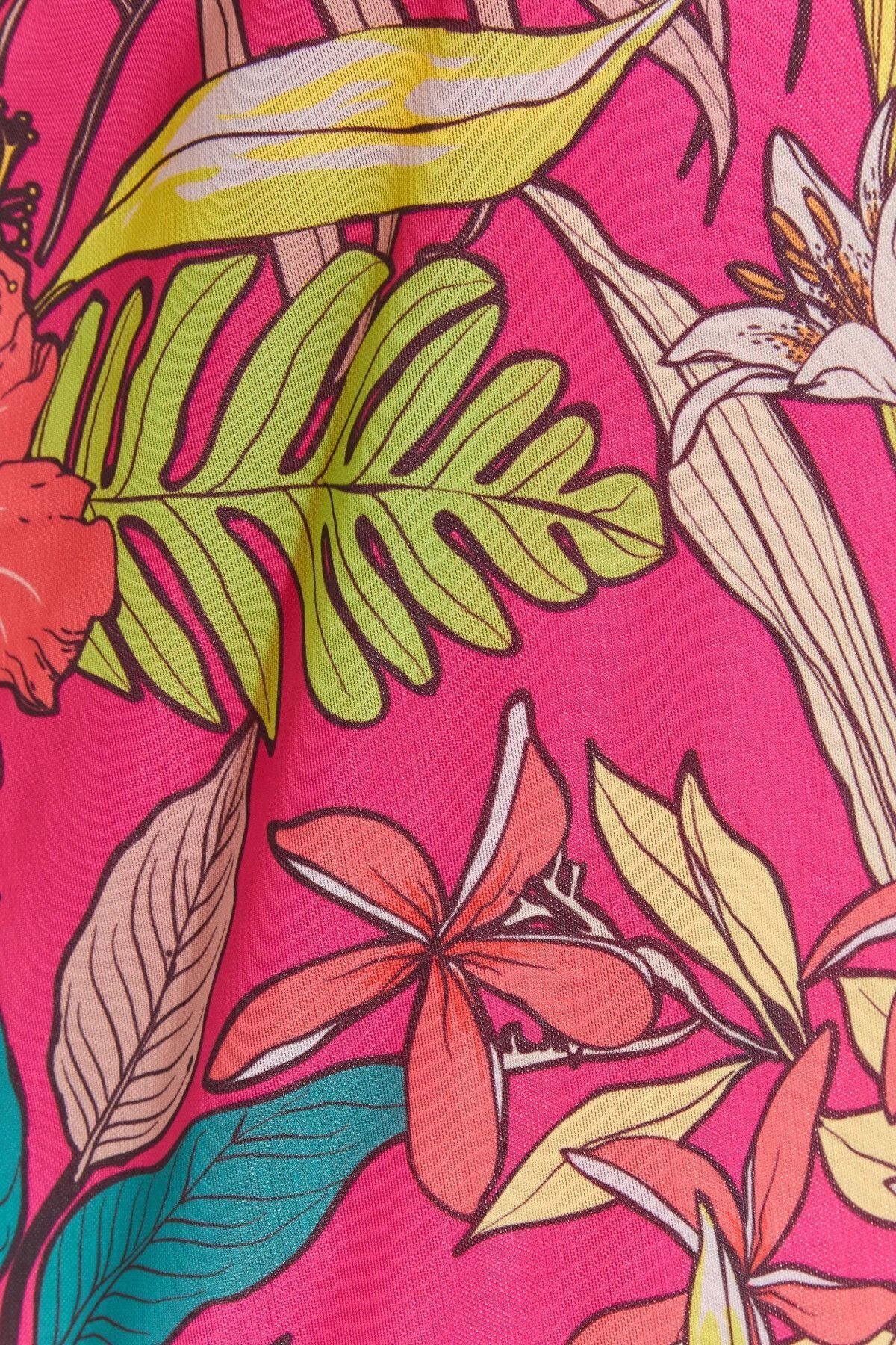 Model Detayı: V yaka tasarımı, kolsuz tasarım, asimetrik kesim, yaprak desenli