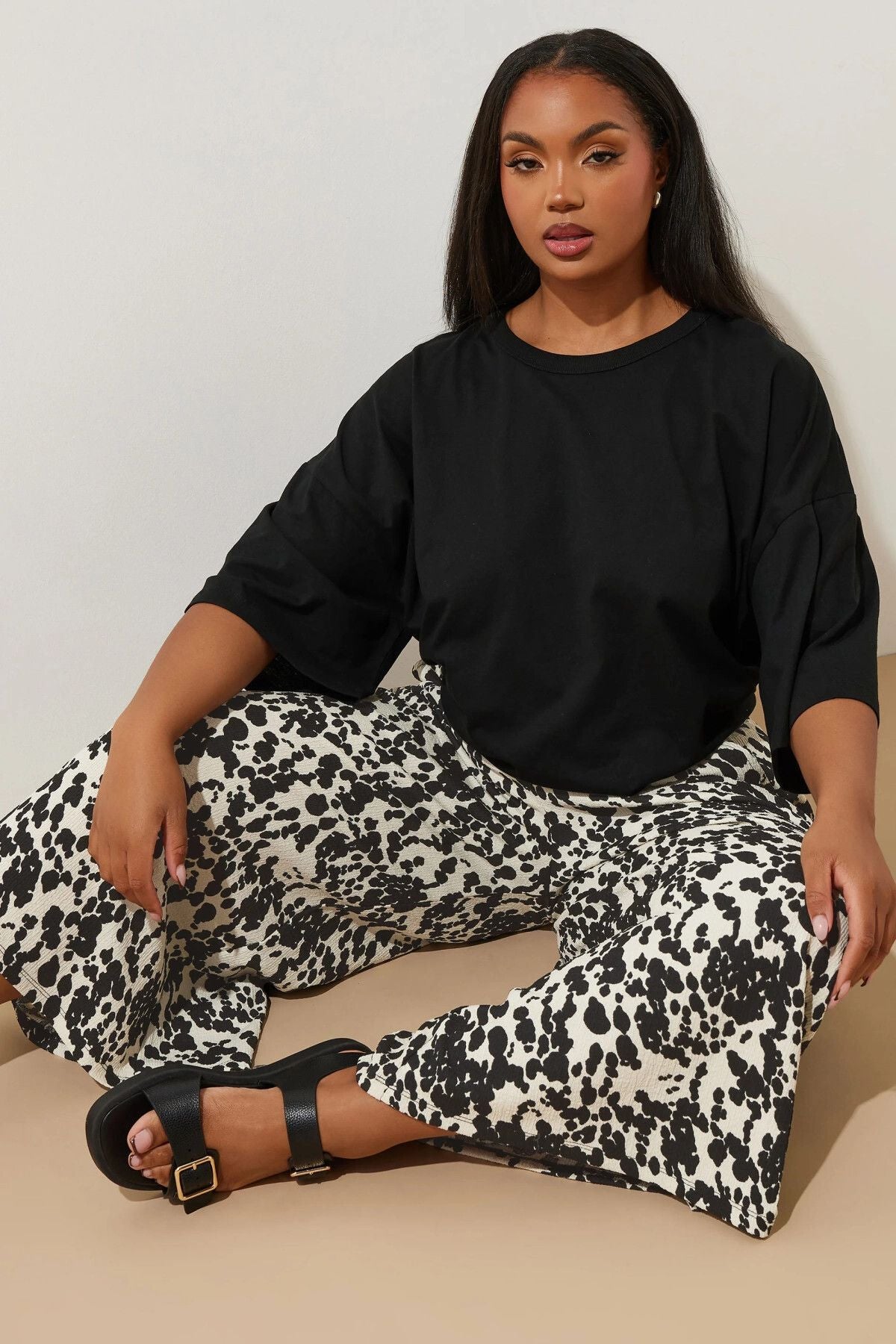 Bu inek desenli culotte ile koleksiyonunuza yeni desenler ekleyin. Rahat dokuma kumaştan üretilen bu pantolon, midaxi boyu ve iki ön cebi ile öne çıkıyor. Kolsuz üst ve spor ayakkabı ile kombinlediğinizde mükemmel western esinlenmeli görünümünüzü tamamlıyor! Mükemmel desen! İnek desenin çiftlik temasının nostaljik çekiciliği ve midaxi boyun modern duruşu ile hem retro hem çağdaş bir stil sunan bu parça, cesur gardırobunuzun dikkat çekici elemanı olmaya aday.