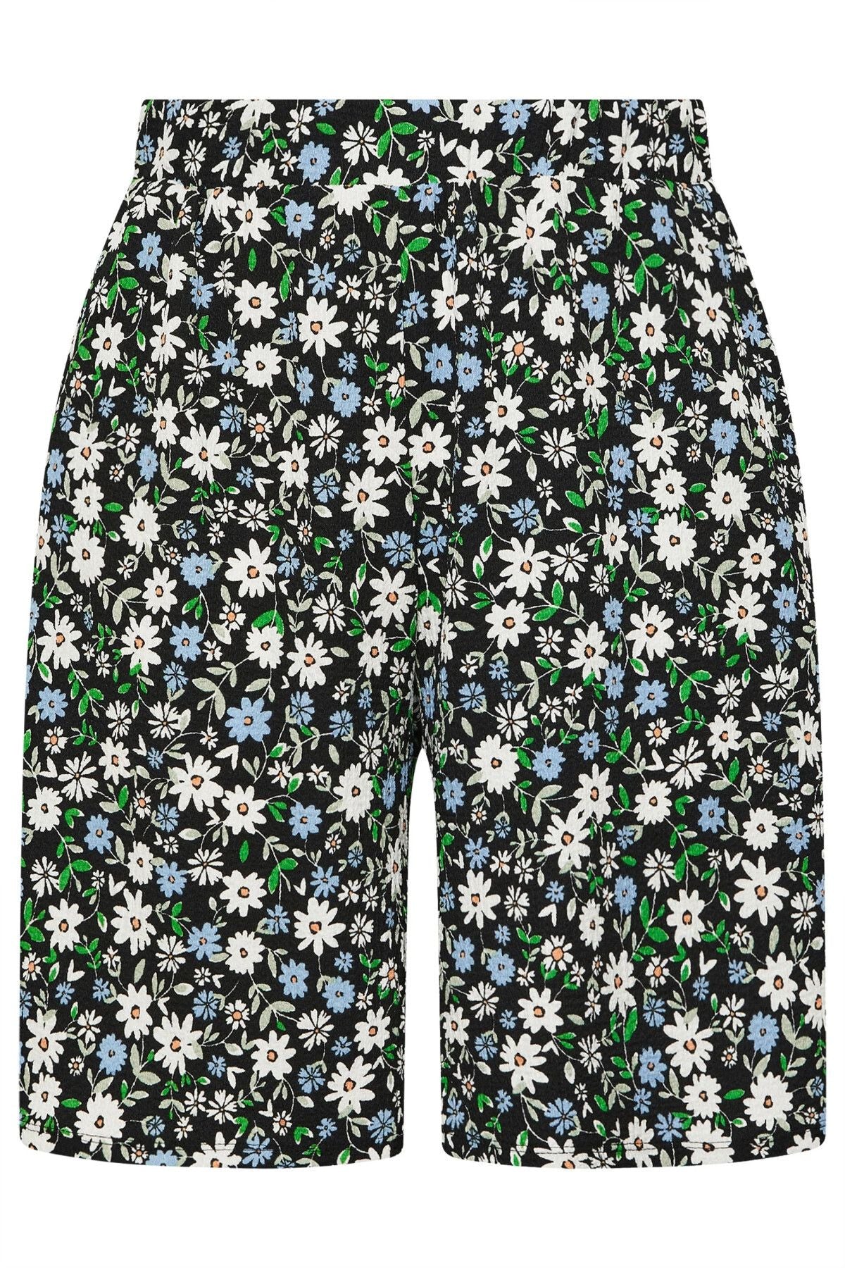 Büyük Beden Beli Lastikli Desenli Bol Kesim Likralı Cepli Şort 145288