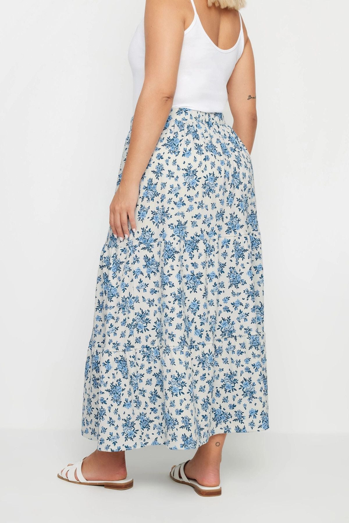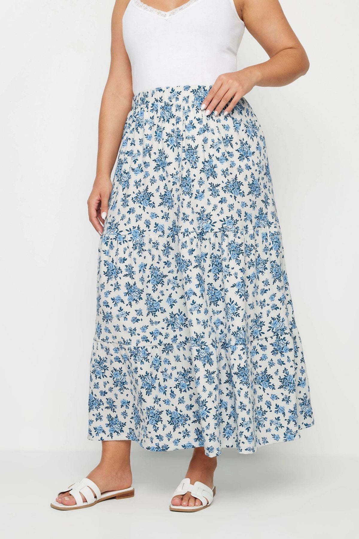 Büyük Beden Beli Lastikli Desenli Kat Kat Uzun Etek 160318