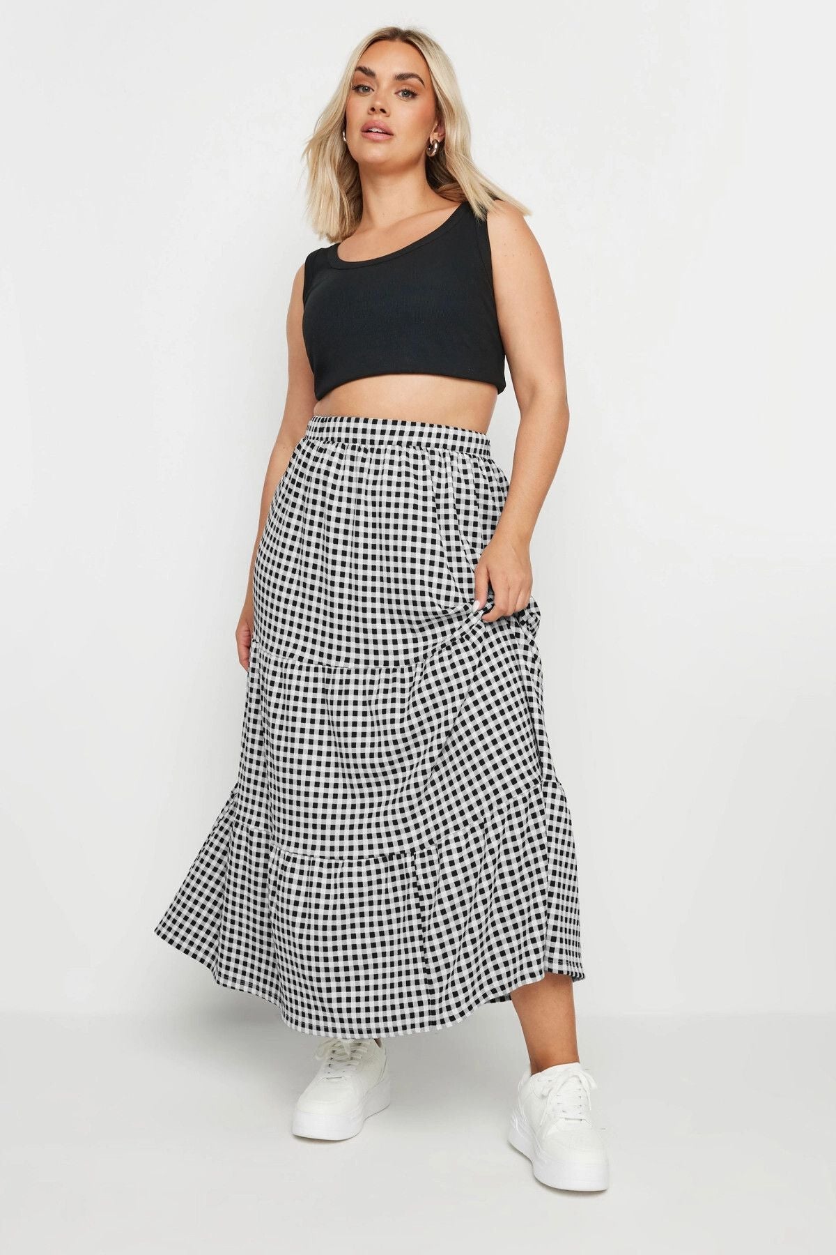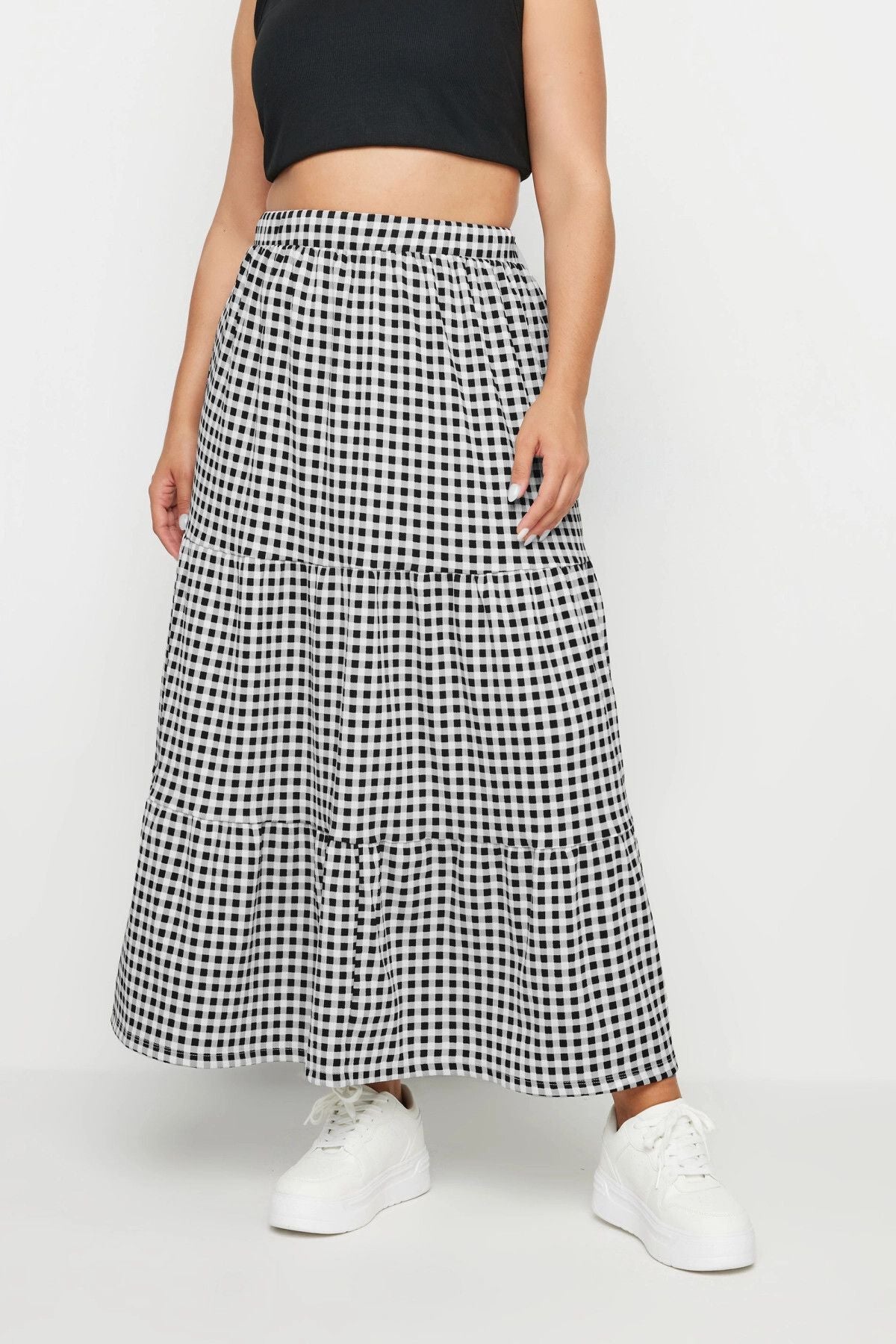 Büyük Beden Beli Lastikli Desenli Kat Kat Uzun Etek 160326