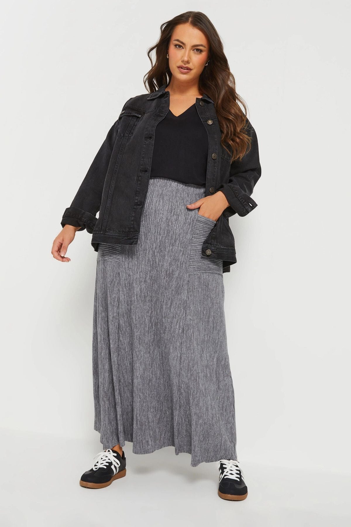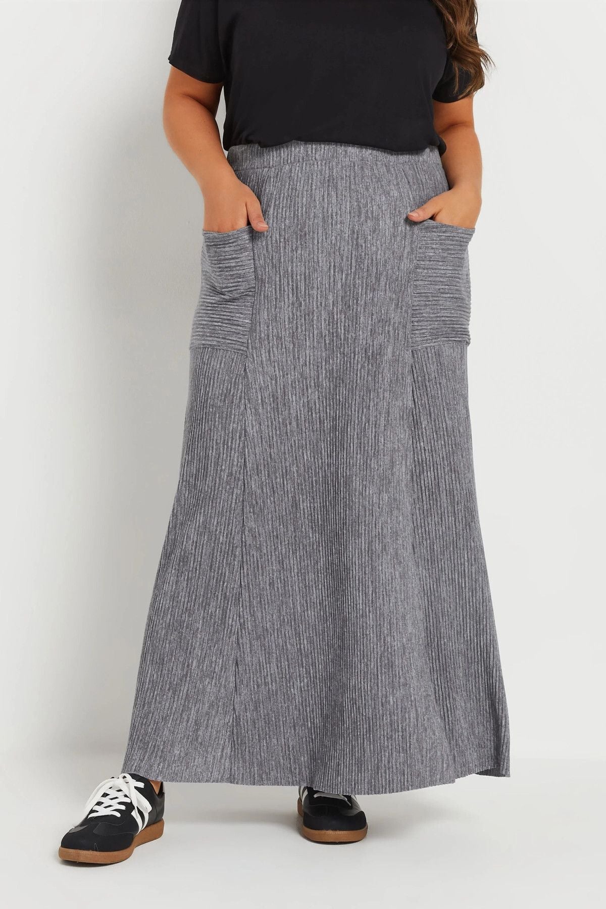 Büyük Beden Beli Lastikli Önden Cepli Fitilli Maxi Etek 303899