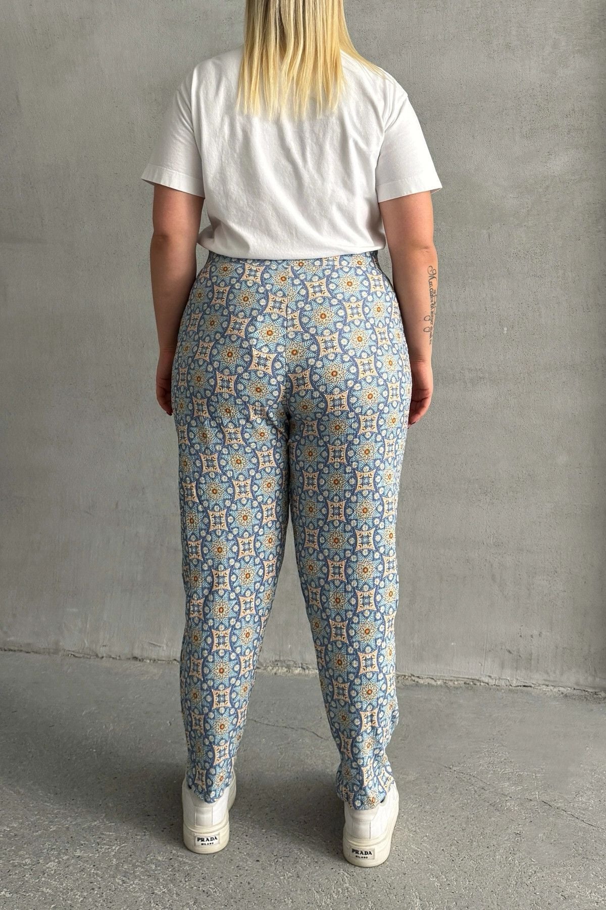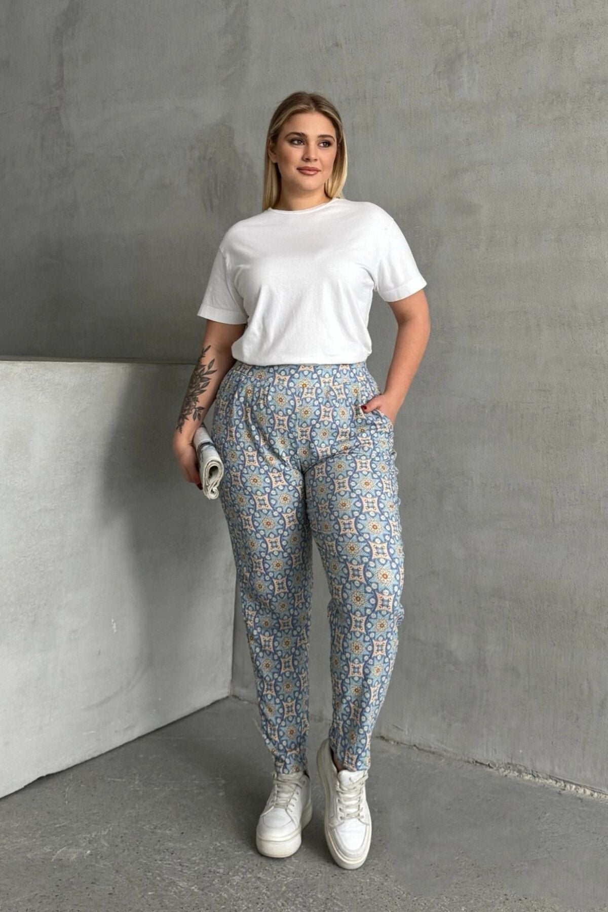 Büyük Beden Beli ve Paçası Lastikli Desenli Cepli Pantolon 303490