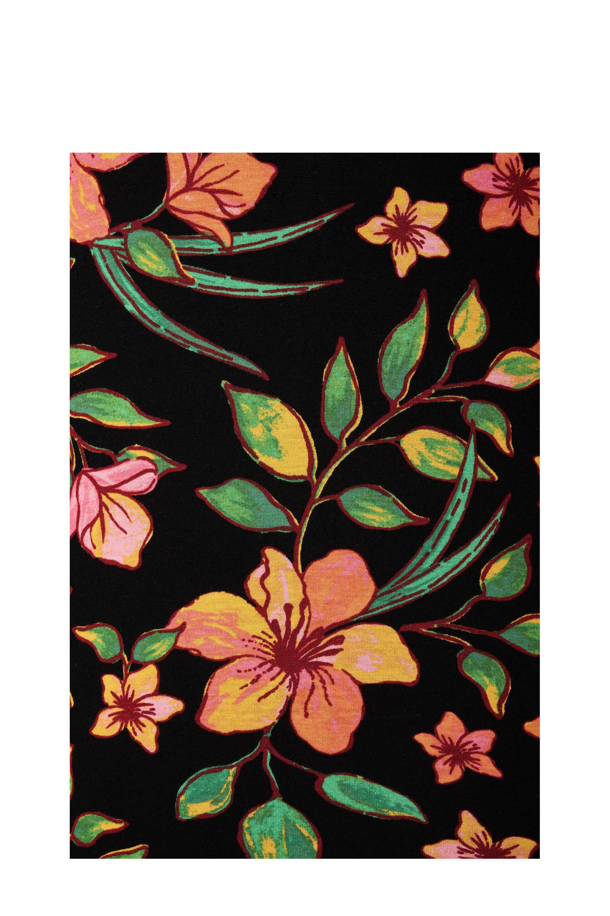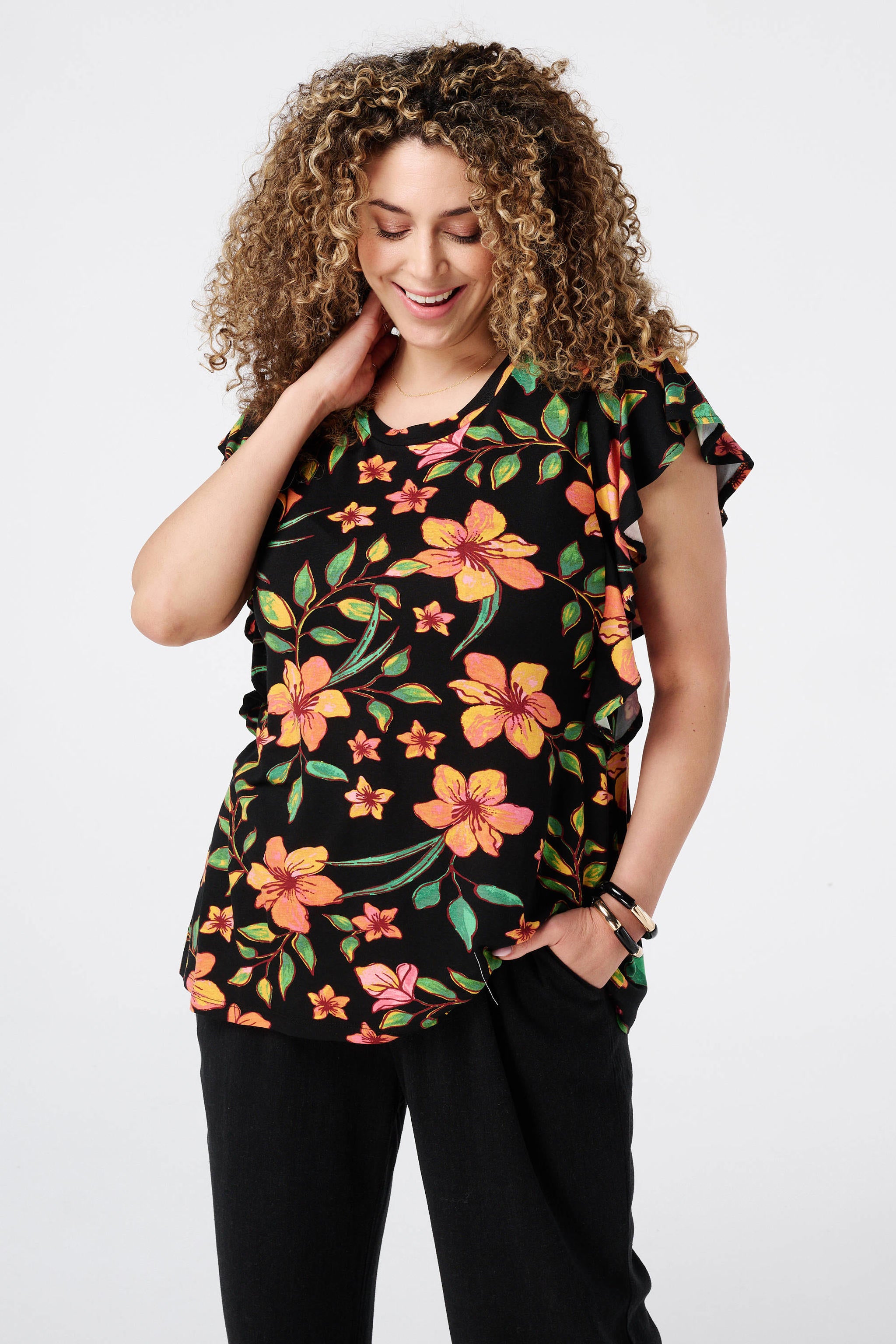 Model Detayı: Panter ve Çiçek Desenli, Yuvarlak Yaka, Kısa Fırfırlı Kol