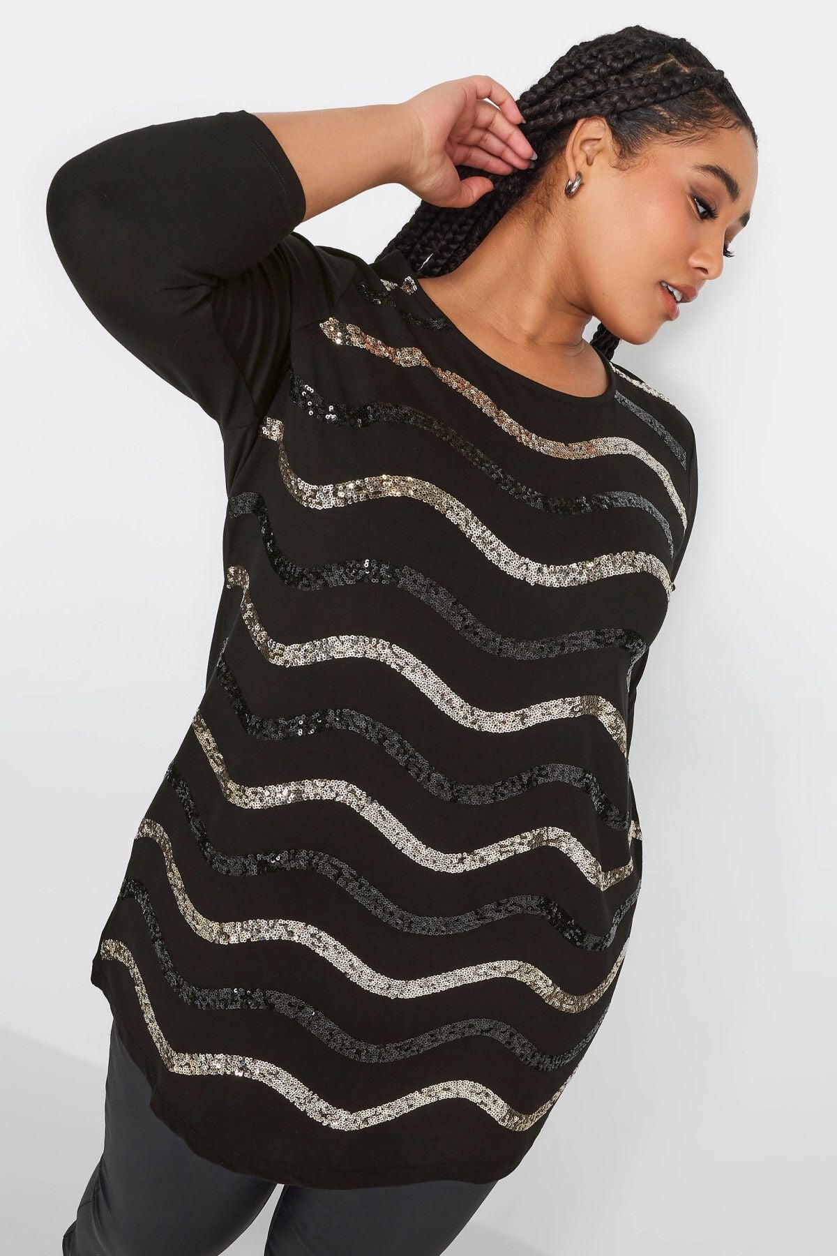 Gündelik stilinize bu ışıltılı bluz ile göz alıcı bir dokunuş katın! Konforlu viskon jarse kumaş, payetlerle işlenmiş modern çizgi deseniyle buluşuyor. Truvakar kol kesimi ise mevsime uygun, zarif bir görünüm sunuyor. Kot pantolonlarınız ve botlarınızla kombinleyerek sonbahar ayları için mükemmel, rahat ve şık bir görünüm yaratın. Bu sezon ışıltınızla parlayın!