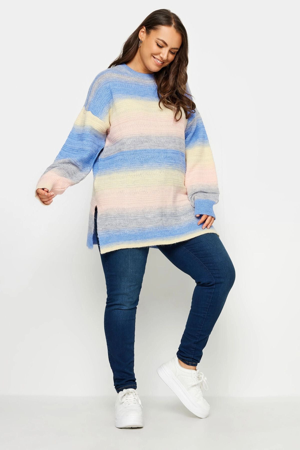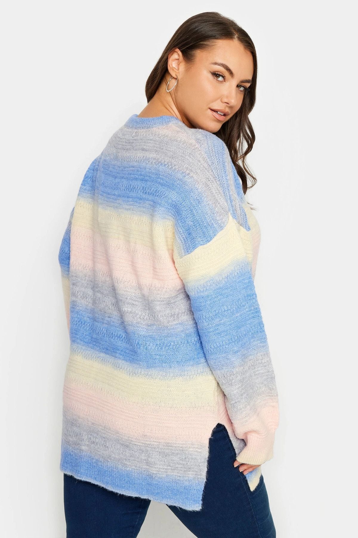 Büyük Beden Bisiklet Yaka Renk Geçişli Uzun Kollu Örme Kazak 302299