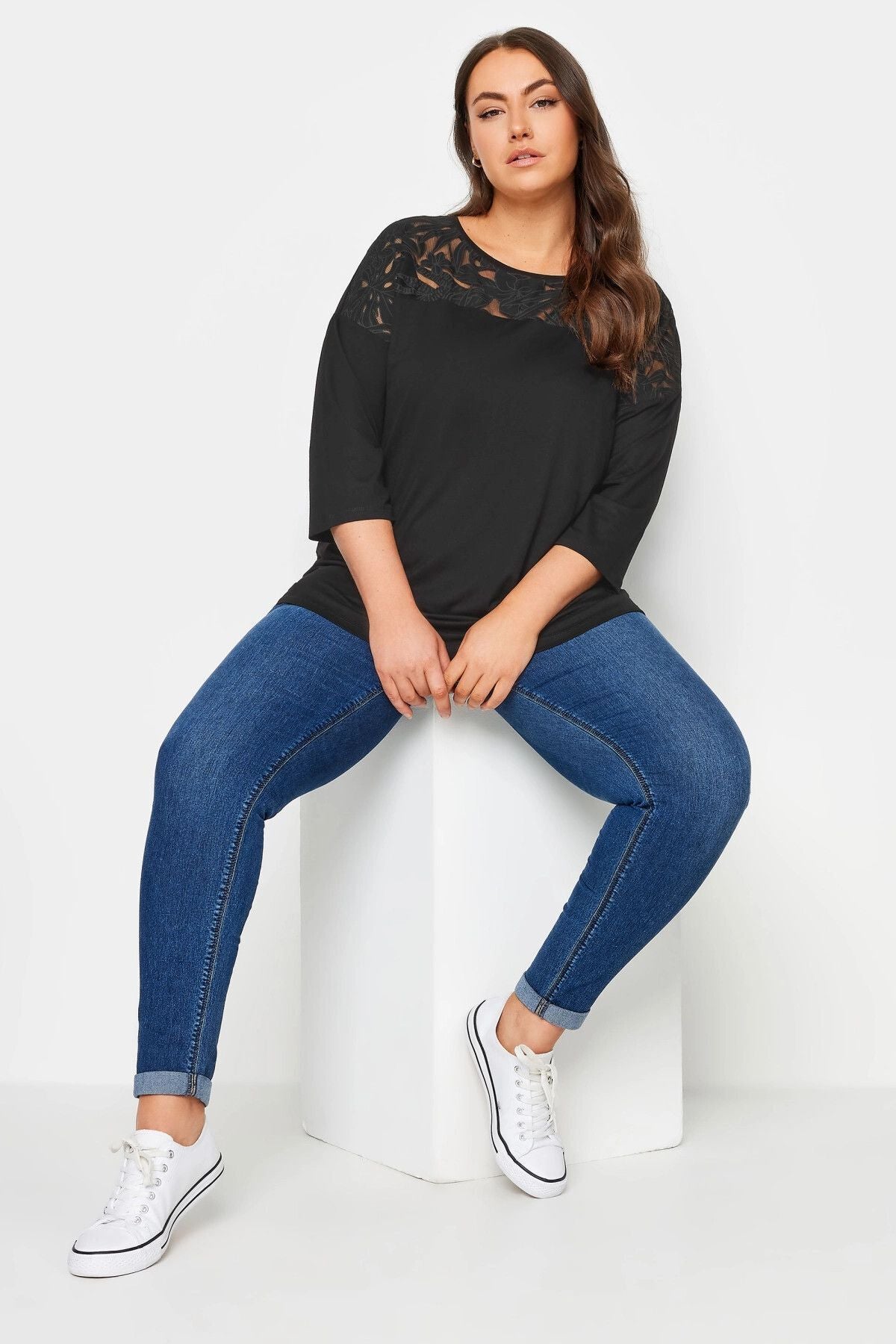 Büyük Beden Bisiklet Yaka Tül Detaylı Fakir Kol Bluz 303026