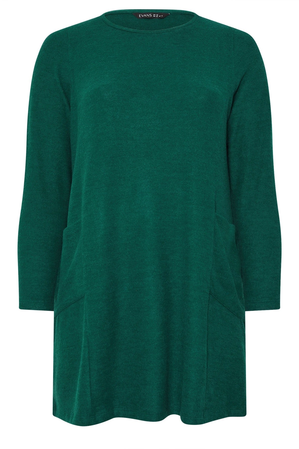Büyük Beden U Yaka Uzun Kollu Cepli Triko Tunik 616455