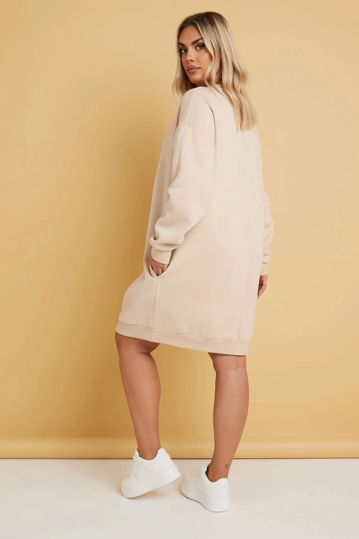 Büyük Beden Bisiklet Yaka Uzun Kollu Cepli Şardonlu Sweastshirt Elbise 304038