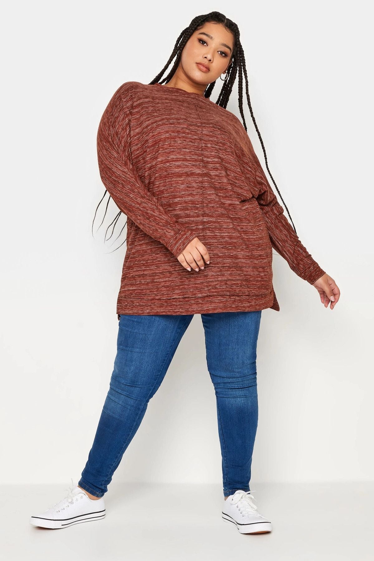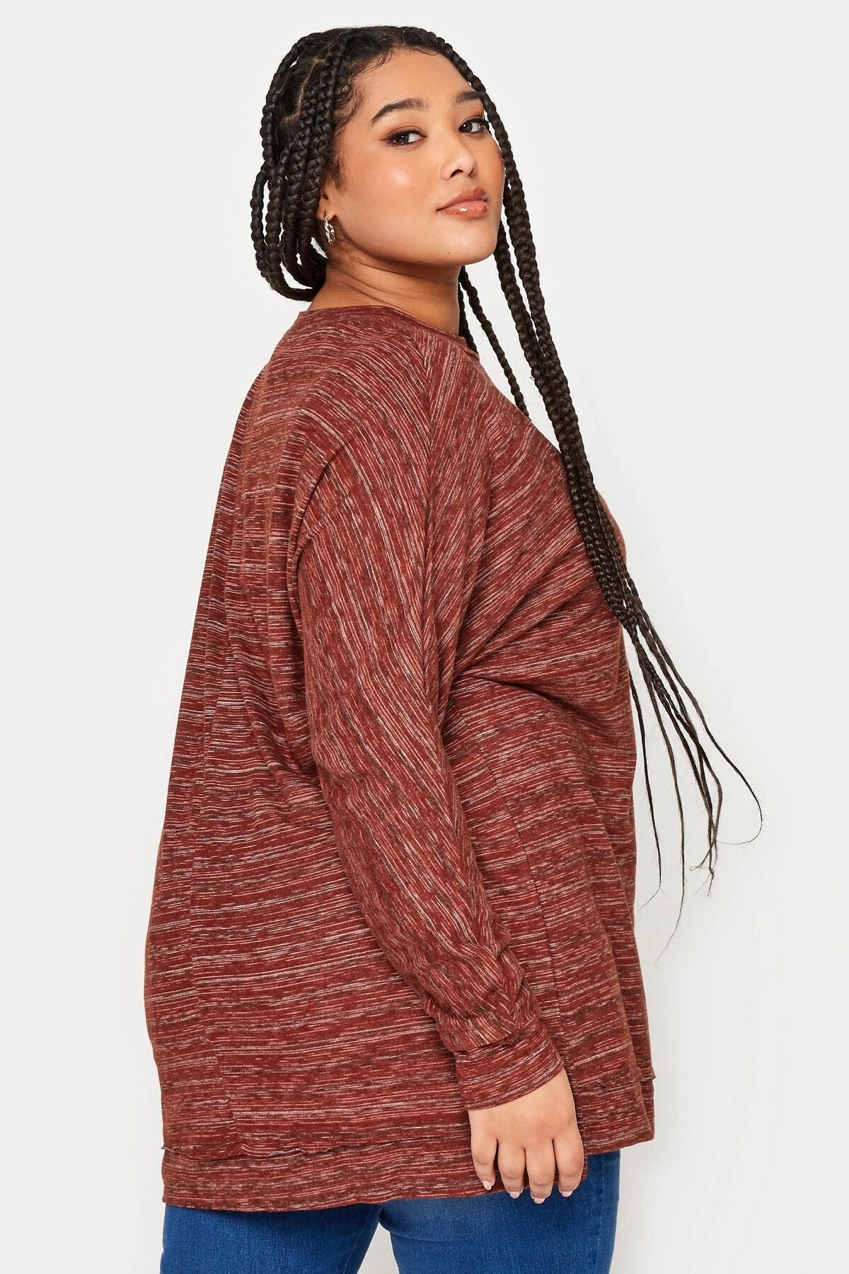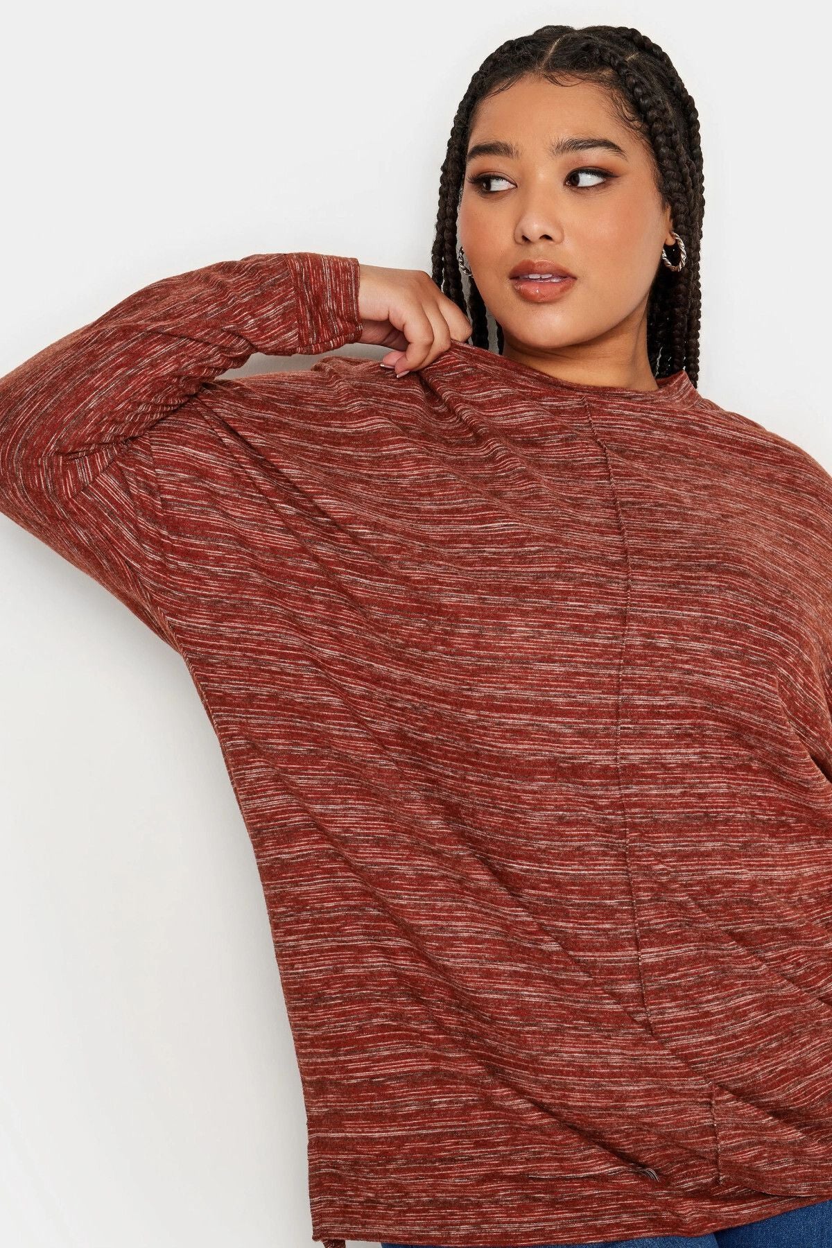 Büyük Beden Bisiklet Yaka Uzun Kollu Dikiş Detaylı Bluz 302864