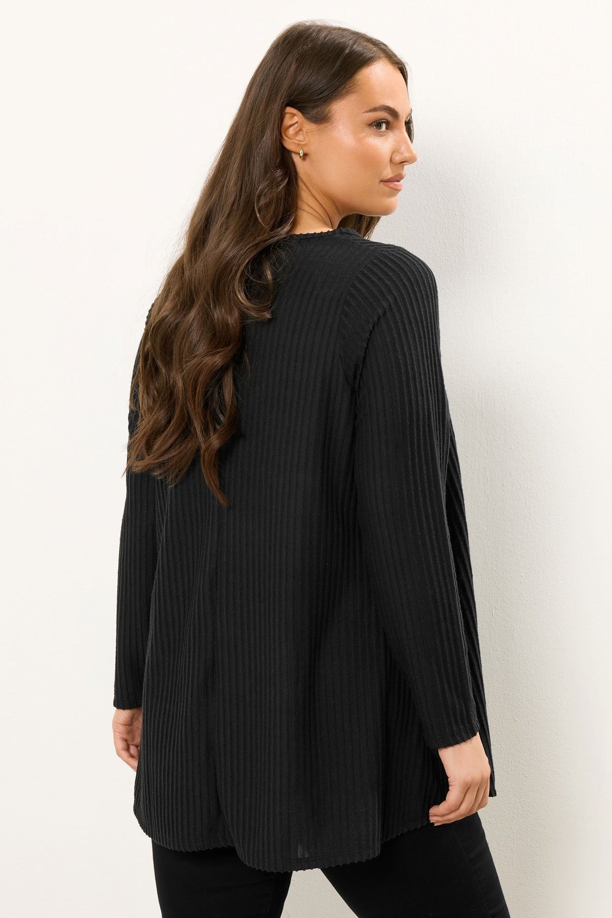 Büyük Beden Bisiklet Yaka Uzun Kollu Fitilli T-shirt 304381