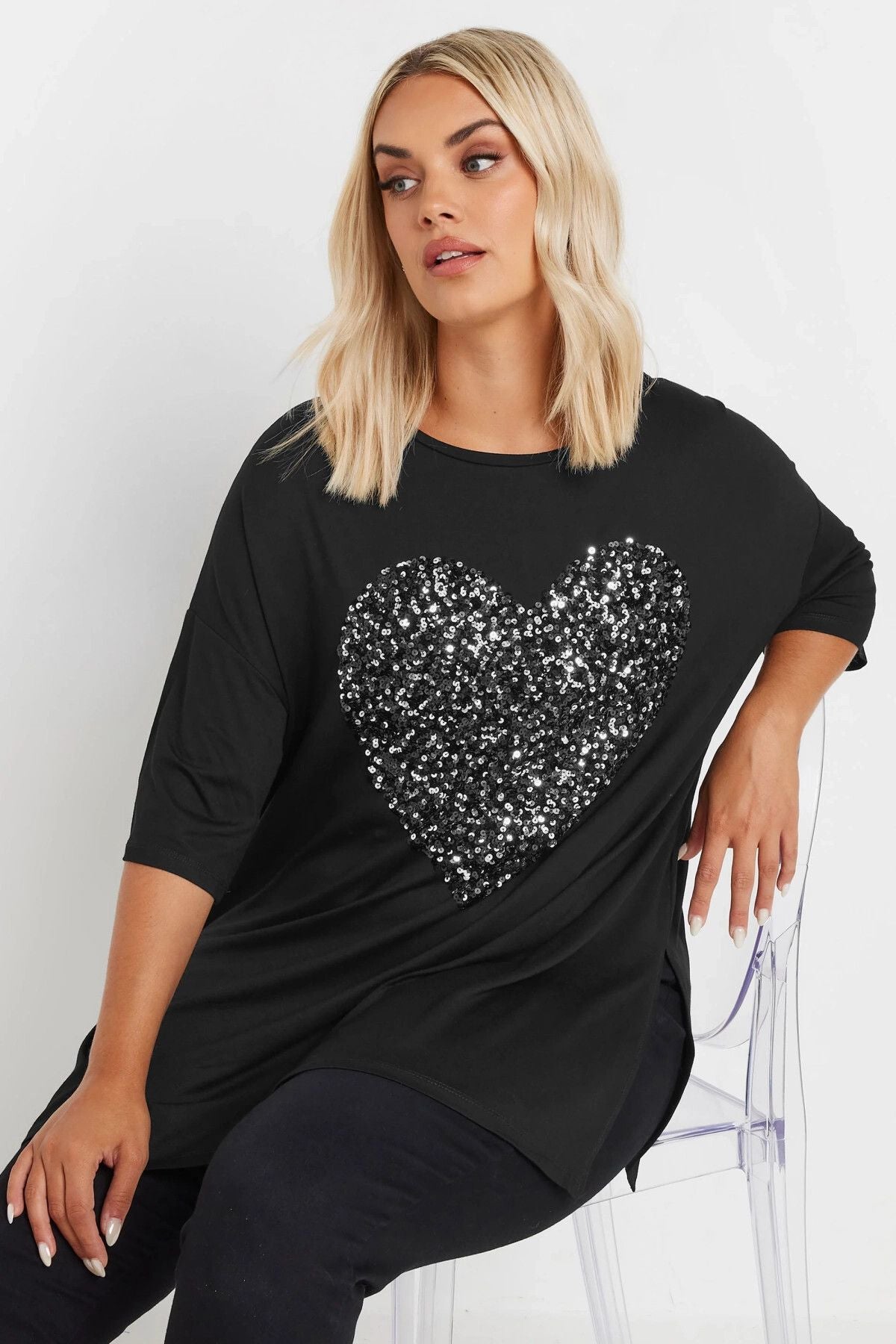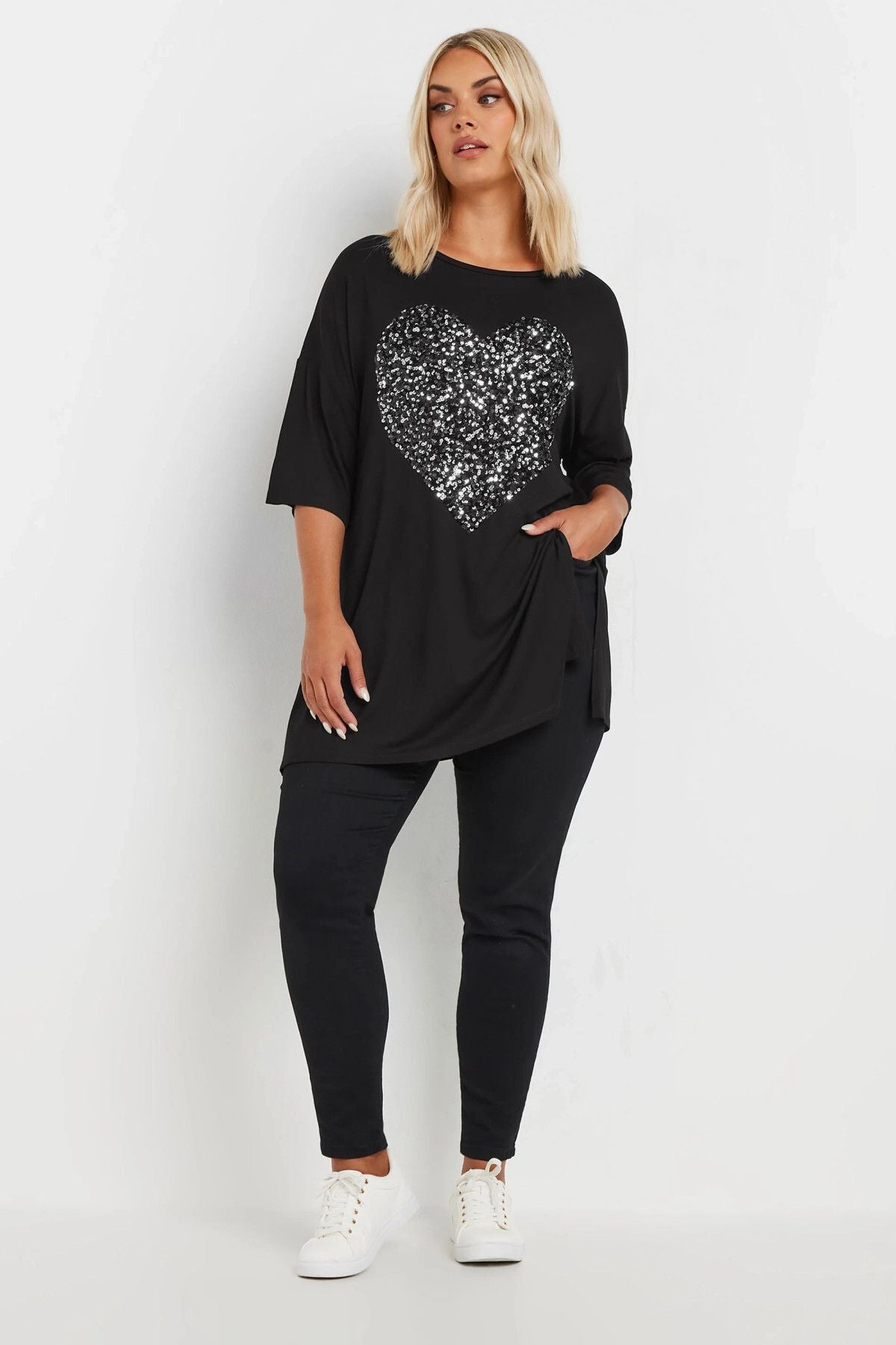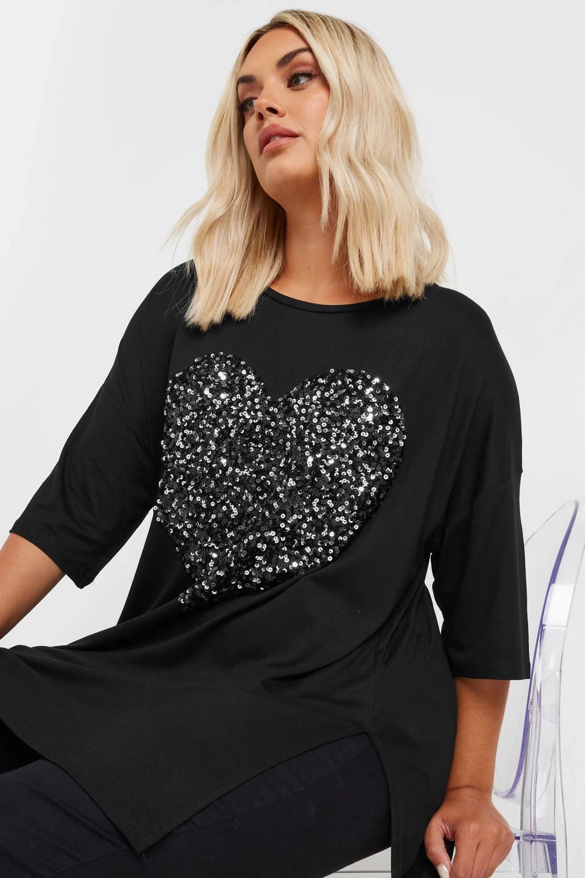 Model Detayı: Payet işlemeli kalp detayı, 3/4 kol, yuvarlak (U) yaka, yanları yırtmaçlı.