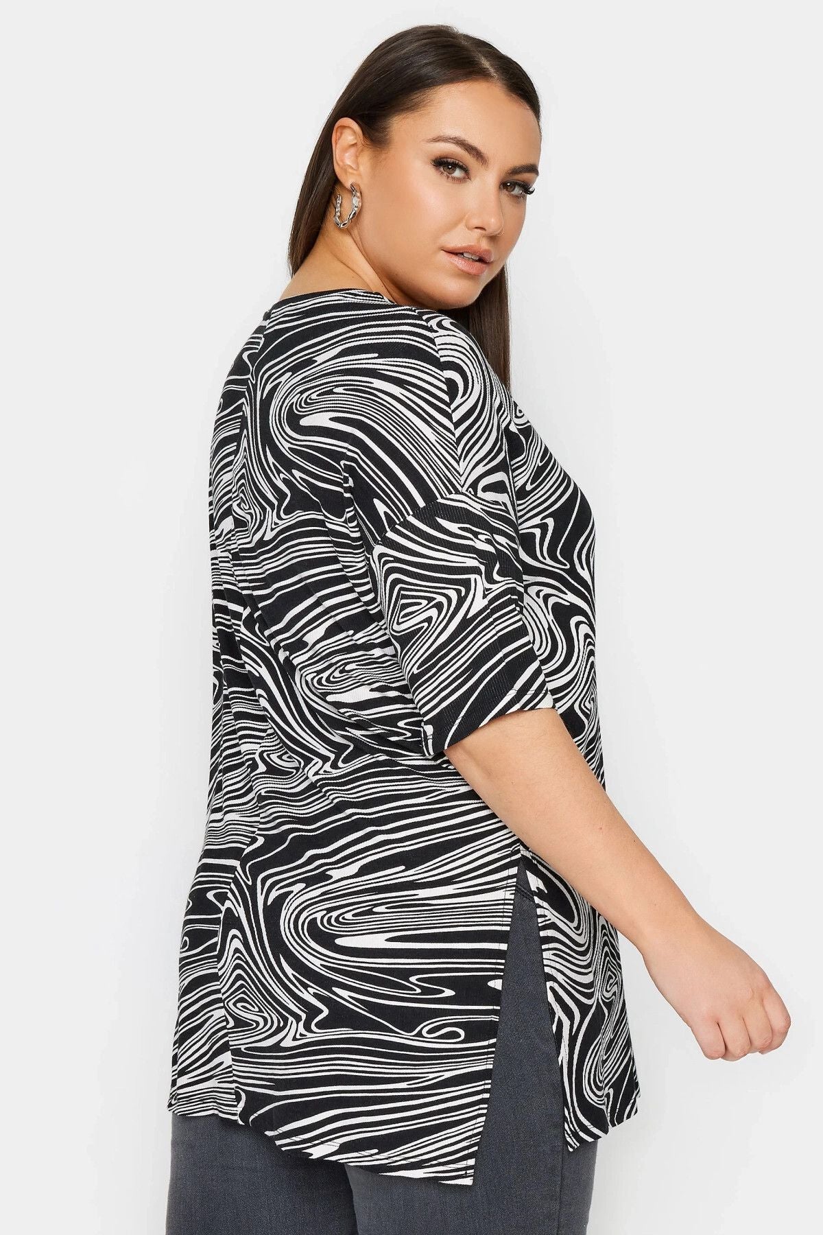 Büyük Beden Bisiklet Yaka Yarım Kollu Yırtmaç Detaylı Desenli T-shirt 302945