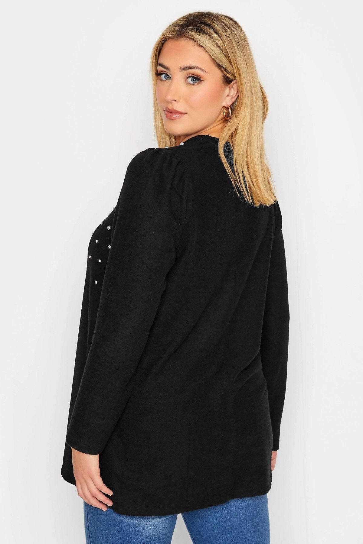Model Detayı: Uzun balon kol, inci işlemeli, bisiklet yaka.