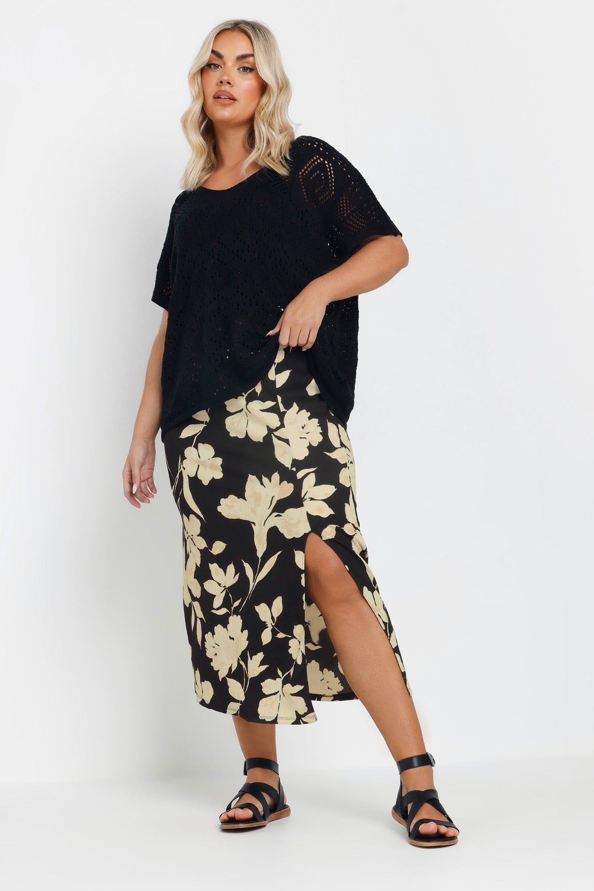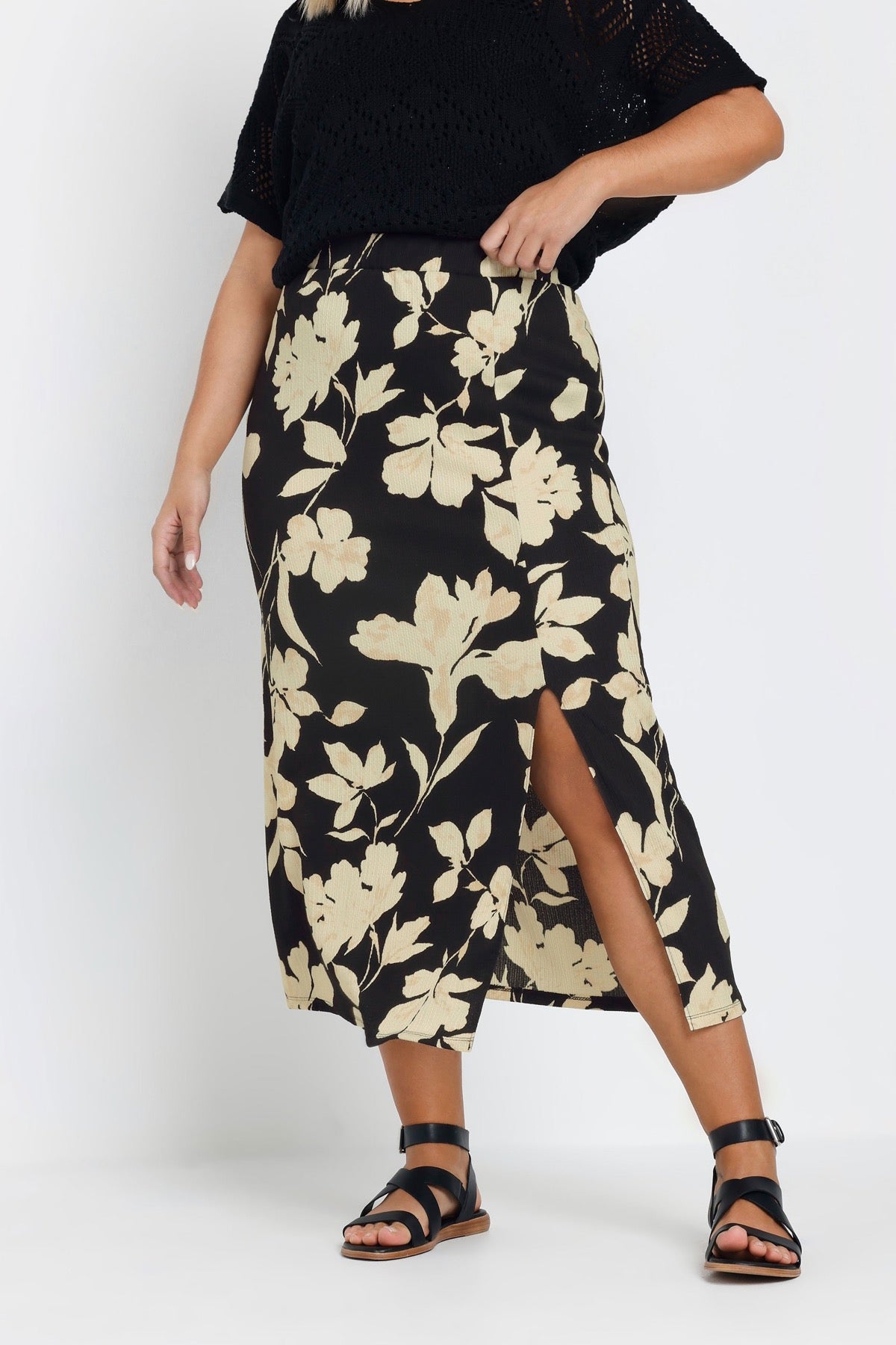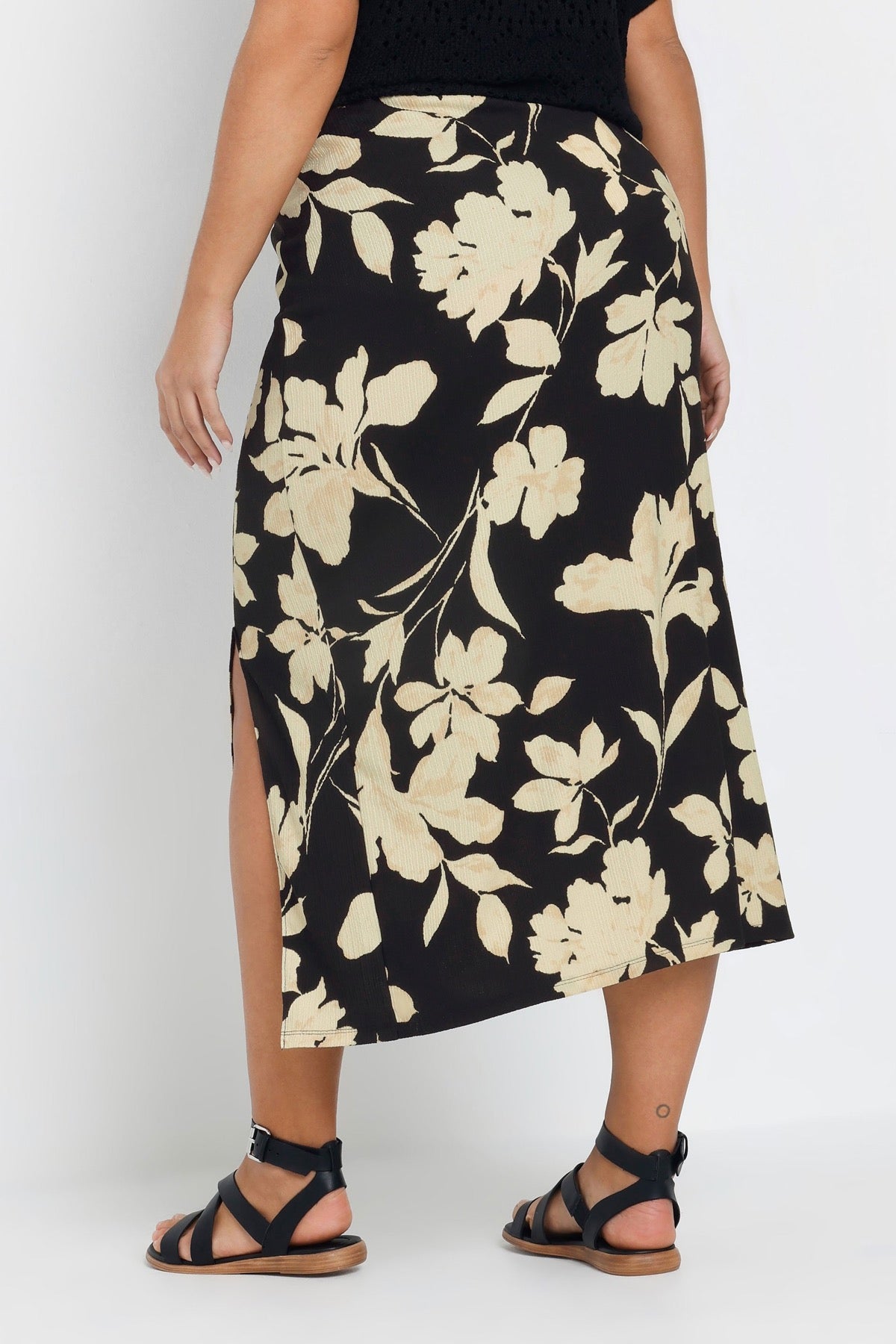 Büyük Beden Bürümcük Kumaş Yırtmaç Detaylı Beli Lastikli Etek 303769
