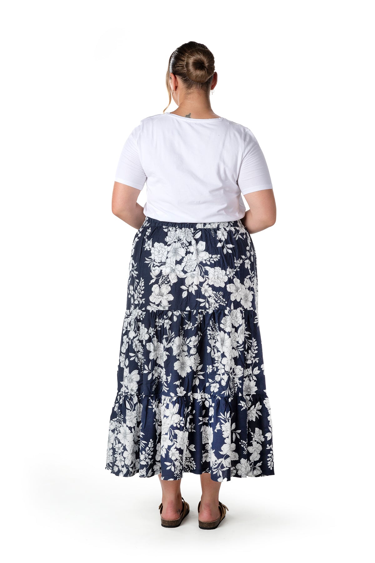 Moda Notu: Yazın enerjisini yansıtan bu çiçek desenli uzun etek, beli lastikli tasarımı ve kat kat detayıyla hem rahatlık hem de bohem bir şıklık sunar. Basic bir tişört ve sandaletlerle kombinleyerek ferah bir yaz stili yaratabilirsiniz.