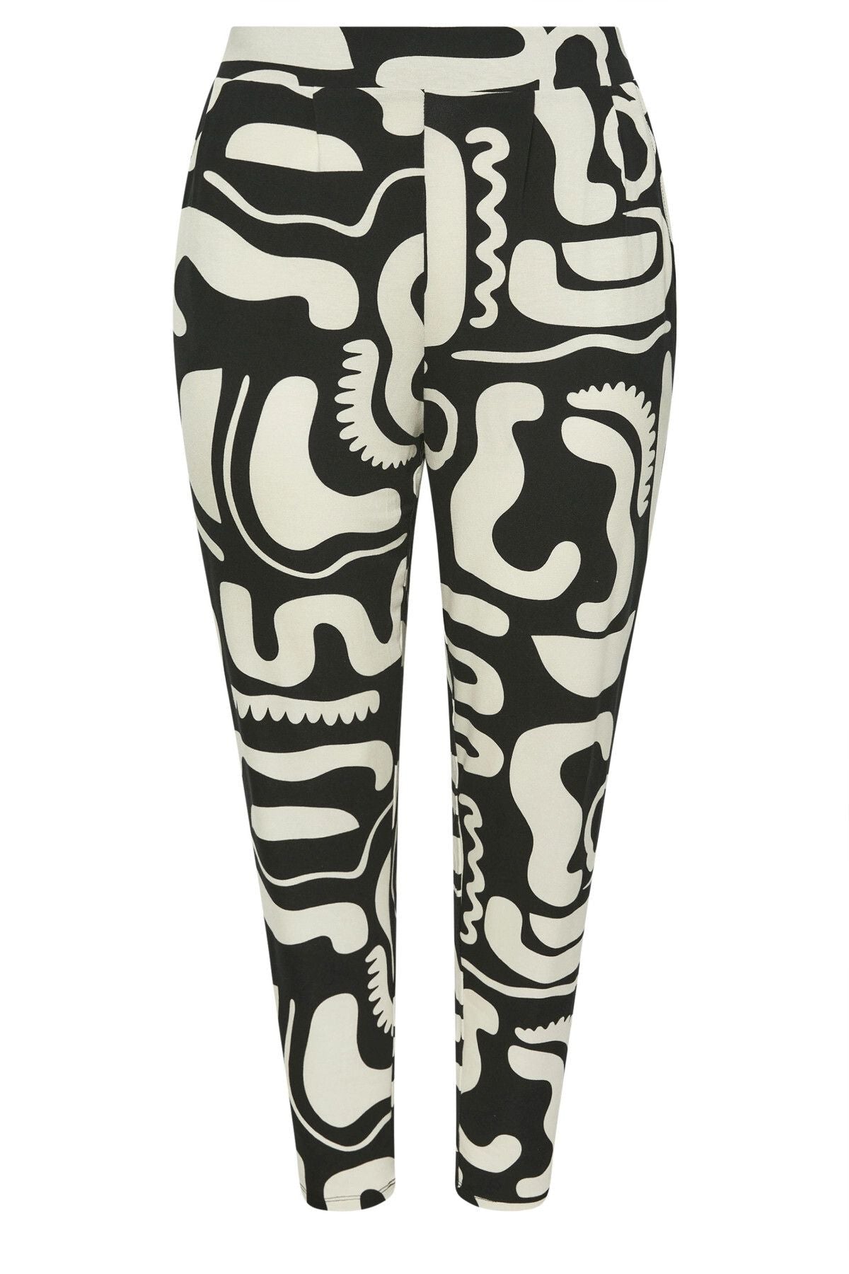 Büyük Beden Dar Paça Desenli Cepli Havuç Kesim Likralı Pantolon 143748