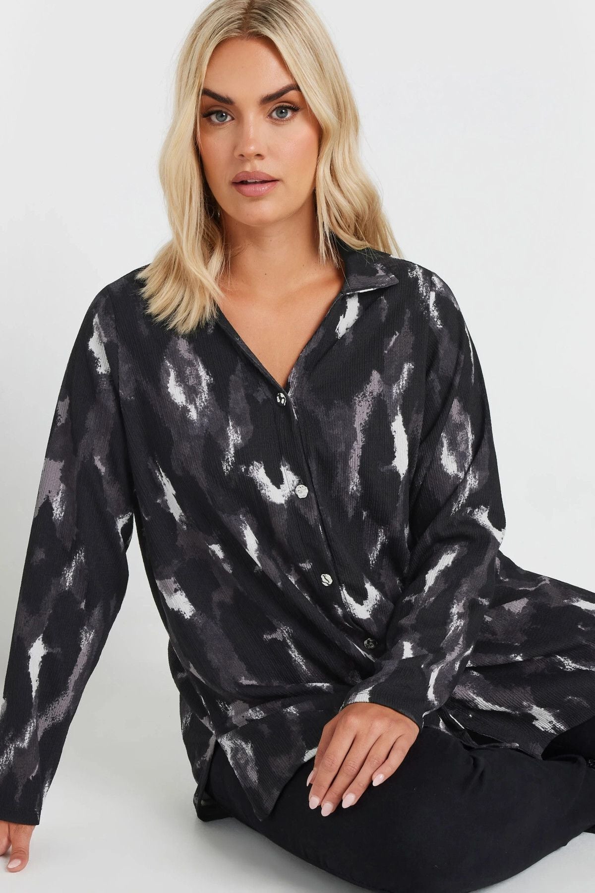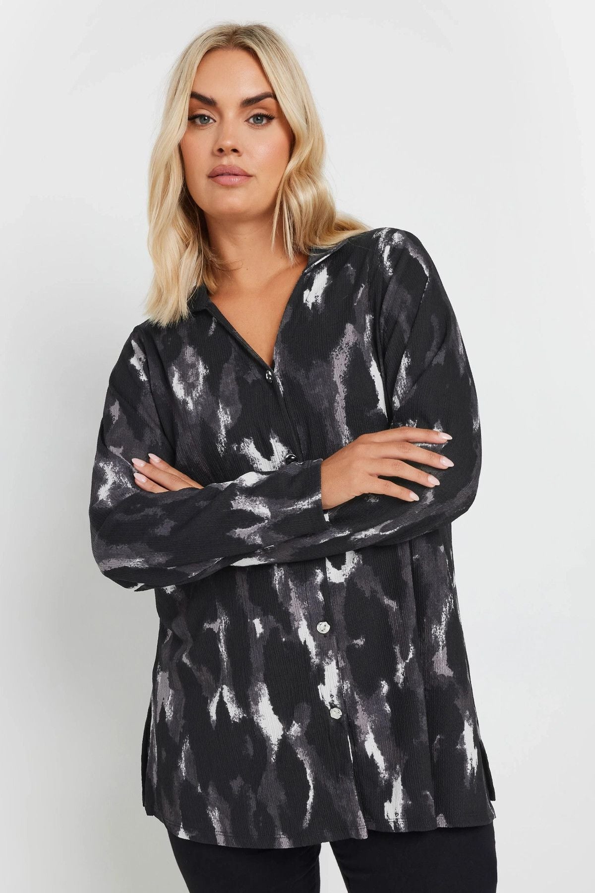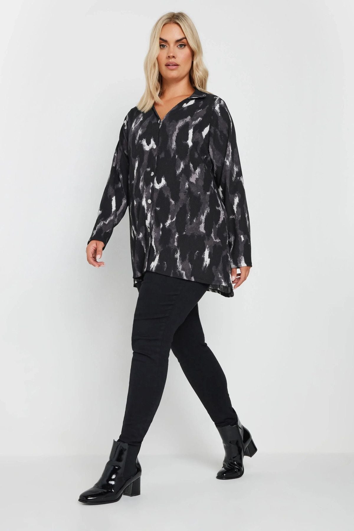 Moda Notu: Gömlek koleksiyonunuzu bu sezon güncelleyin! Dokulu jarse kumaştan üretilen bu gömlek, soyut deseni, yandan yırtmaçlı tasarımı, klasik yakası, düğmeleri ve uzun kollarıyla öne çıkıyor. Kot pantolonlar ve botlarla kombinleyerek bayılacağınız şık bir günlük stil yaratın.
