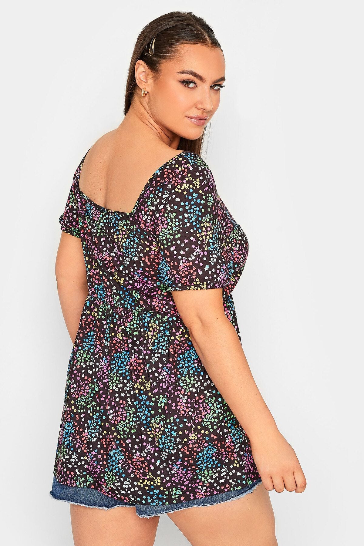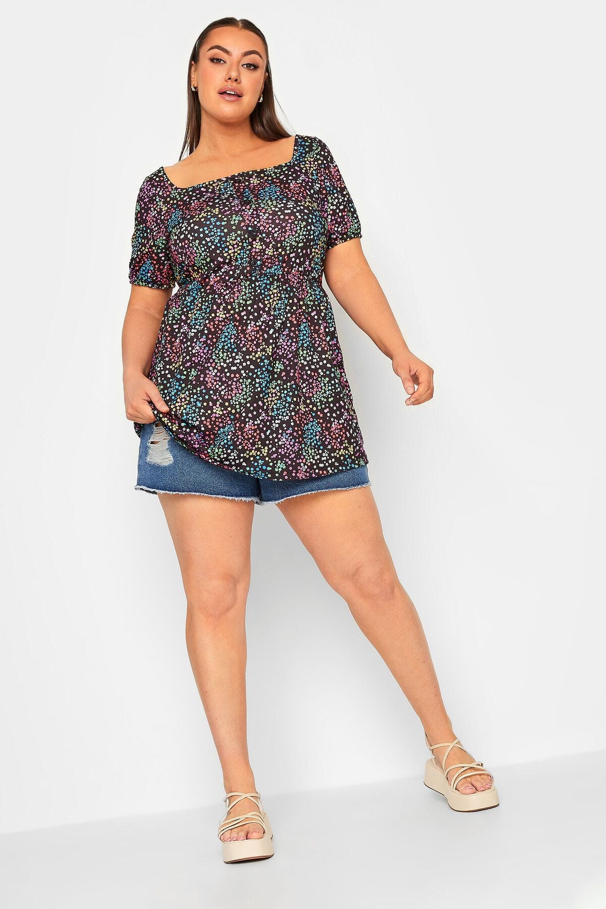 Büyük Beden Düğme Detaylı Kare Yaka Desenli Esnek Bluz 215848