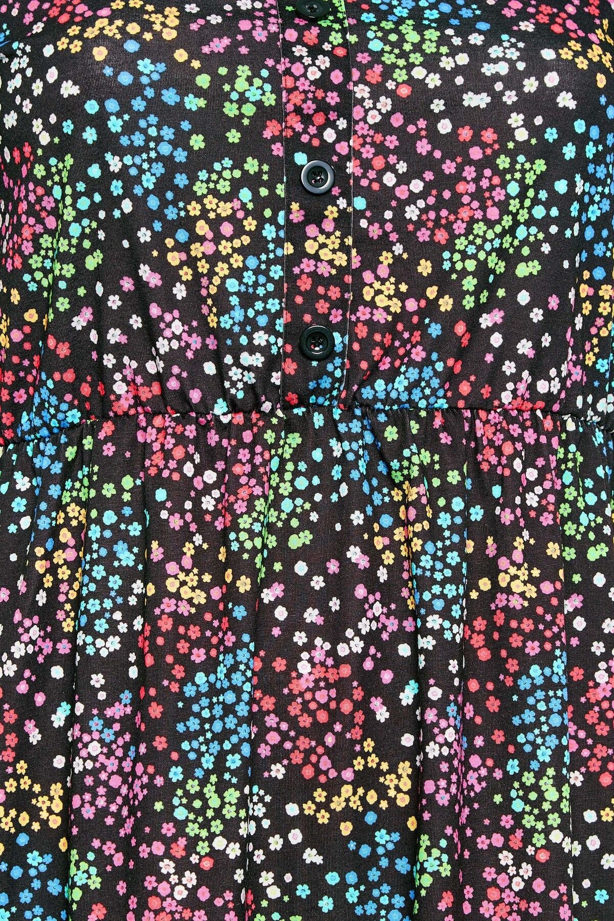 Model Detayı: Dağınık Desenli, Kare Yaka, Sahte Düğme Detaylı, Lastikli Bel ve Manşetler, Kısa Kollu