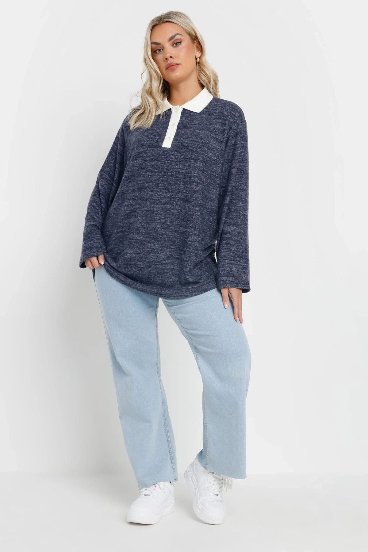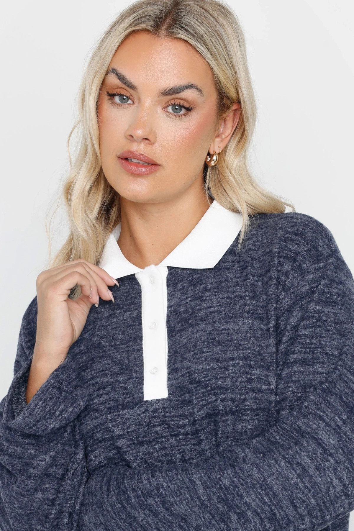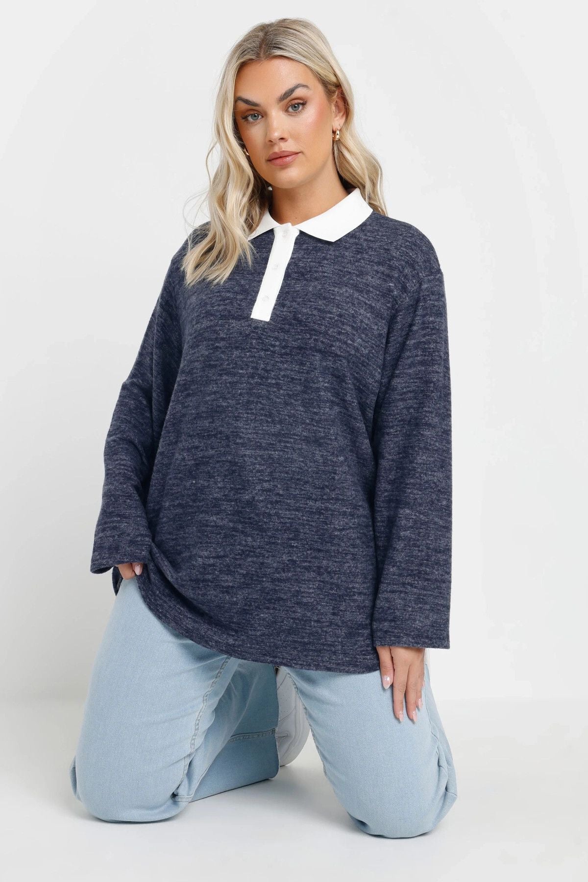 Büyük Beden Gömlek Yaka Uzun Kollu Yumuşak Dokulu Kazak 285043