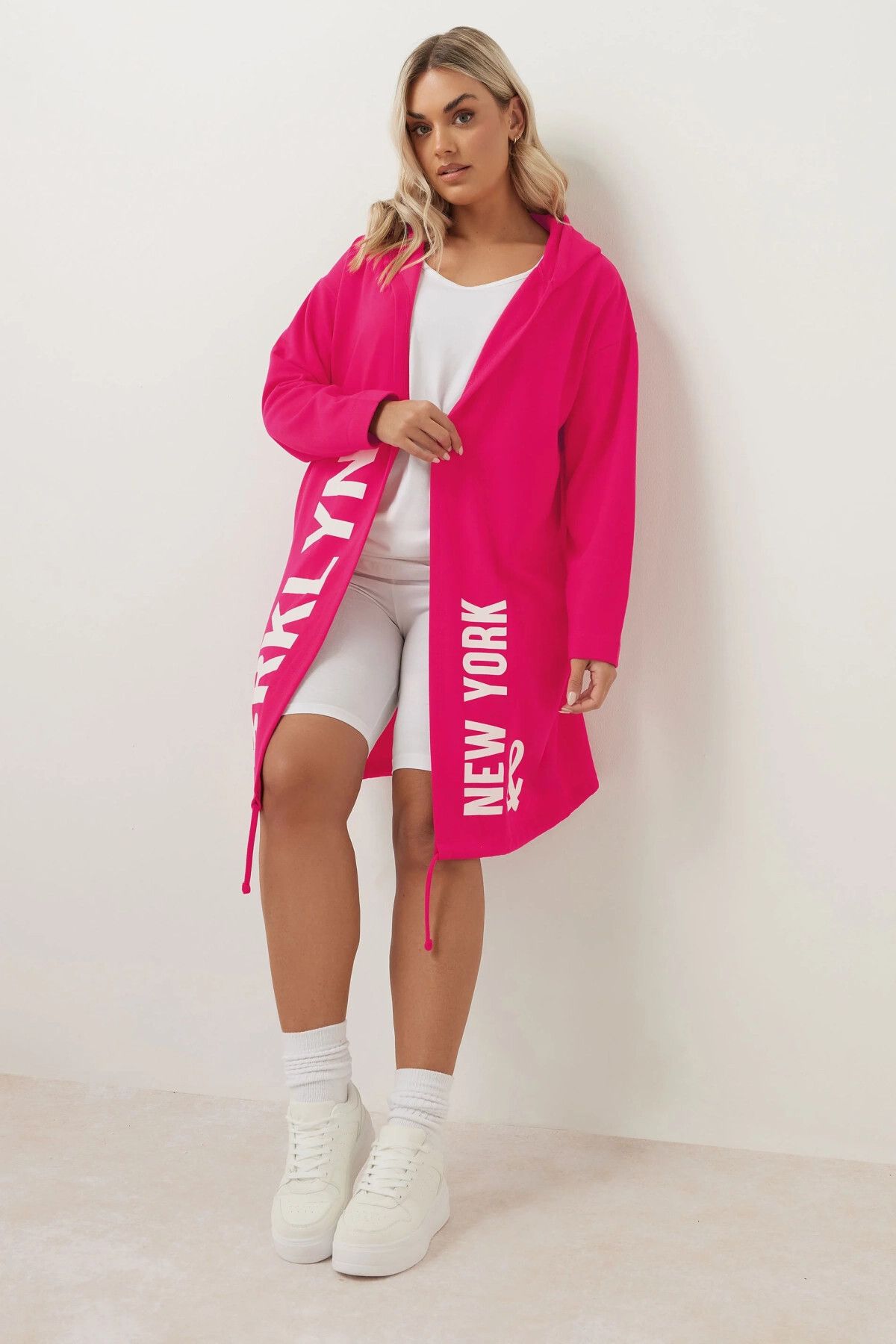 Model Detayı: 'BRKLYN' Sloganlı, Uzun Model, Önü Açık, Bağcık Detaylı, Kapüşonlu, Uzun Kollu