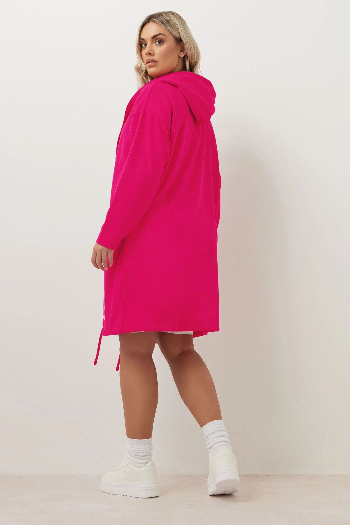 Büyük Beden Kapüşonlu Uzun Kollu Yazı Baskılı Cepsiz Hırka 303983