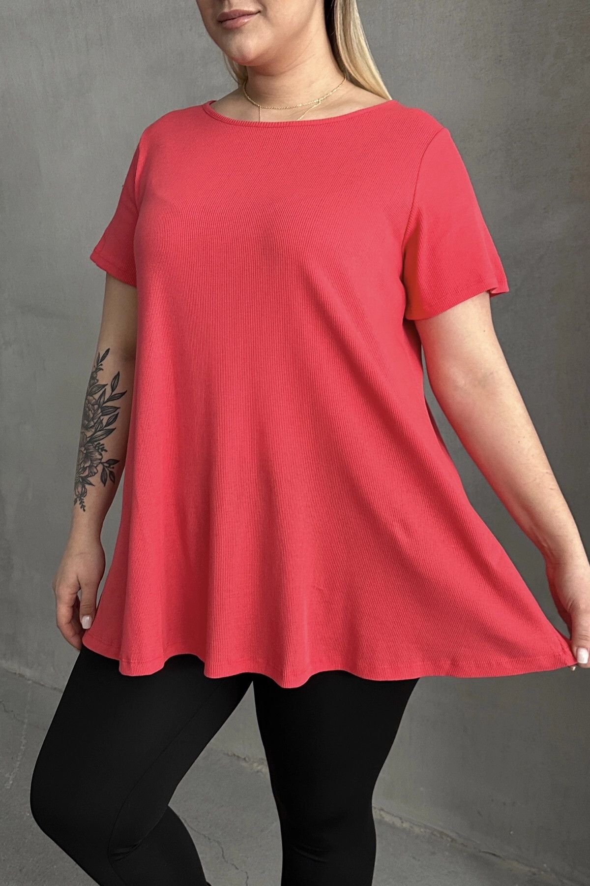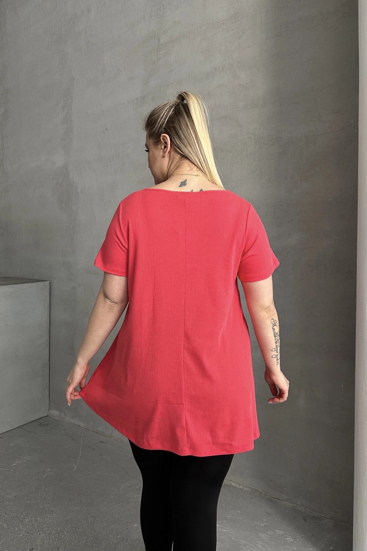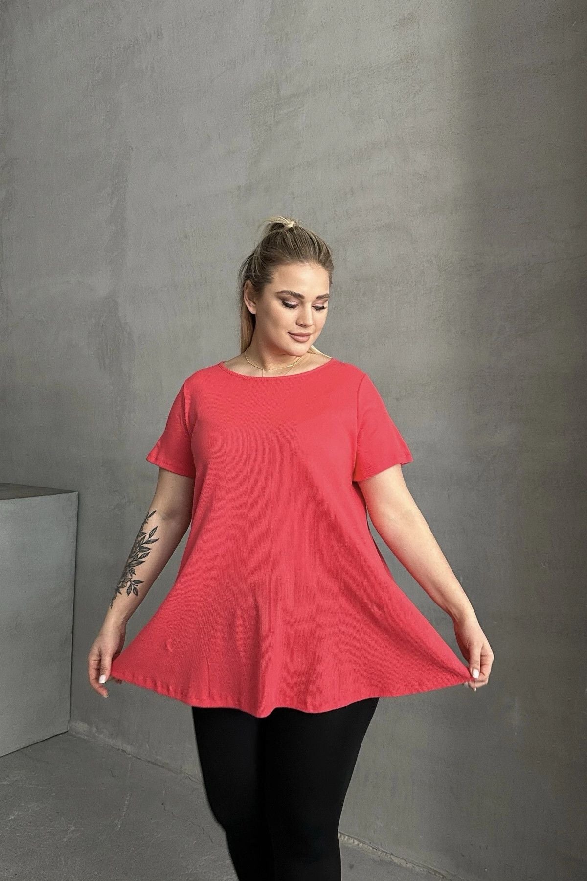 Büyük Beden Kısa Kollu Bisiklet Yaka Eteği Bollaşan Basic Bluz 100-50