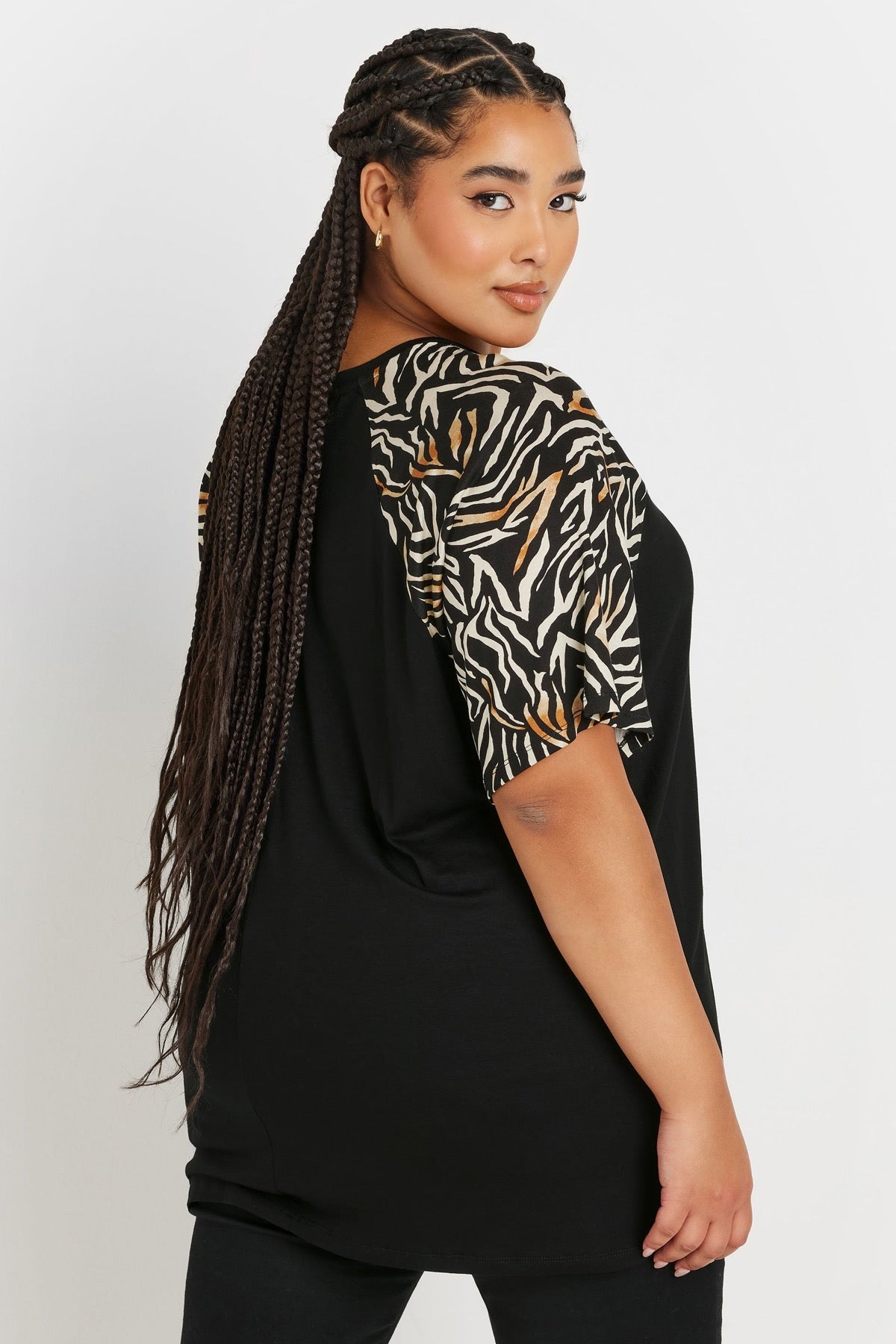 Model Detayı: Leopar kontrast baskı, kısa kollu, U yaka