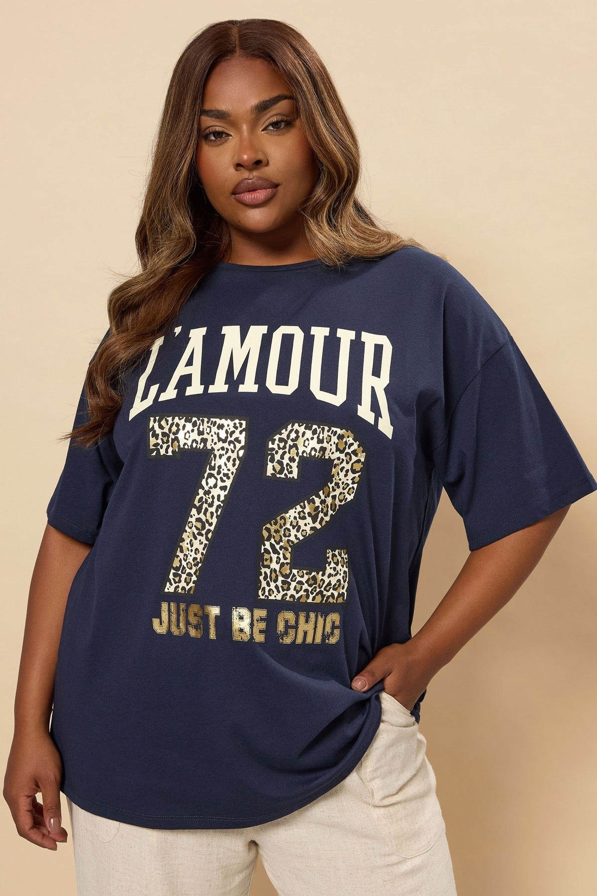 Model Detayı: 'L'Amour just be chic' sloganlı, kısa kollu, bisiklet yaka