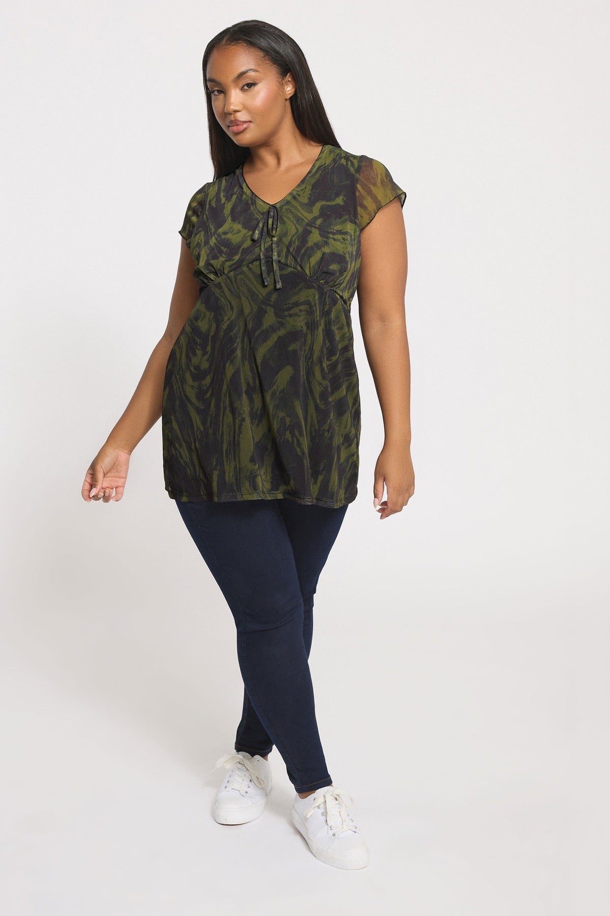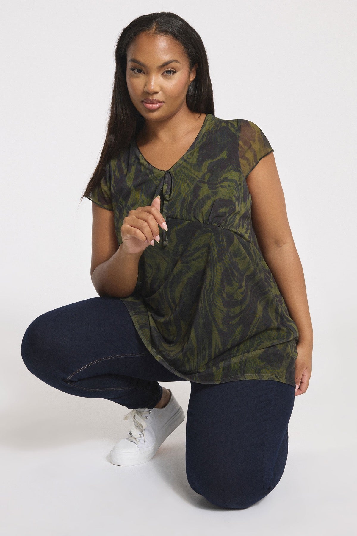 Moda Notu: Bu sezonun favorisi olacak bu tişörtle hafta sonu gardırobunuzu yenileyin! Dalgalı deseni ve zarif detayları ile öne çıkan bu parçayı, jean pantolon ve spor ayakkabılarınızla kombinleyerek çok seveceğiniz, rahat bir günlük stil oluşturabilirsiniz.