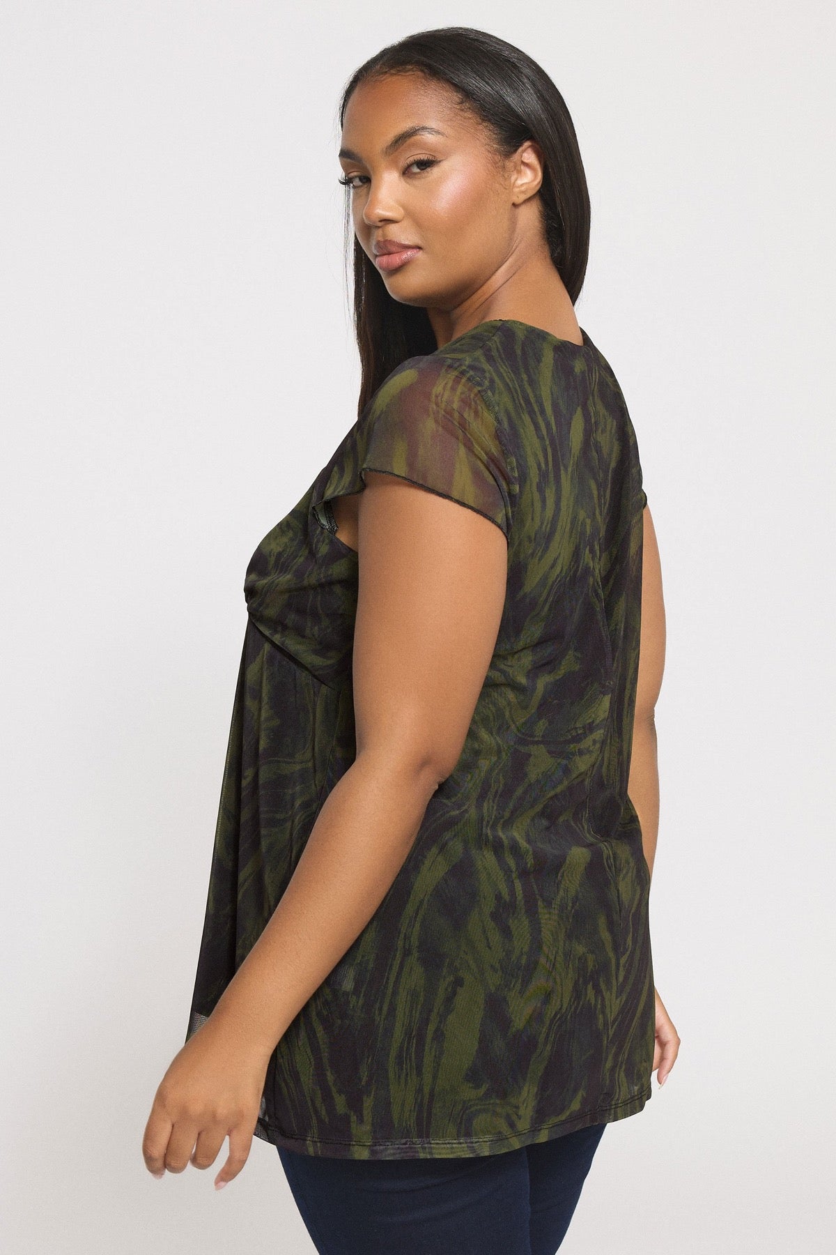 Büyük Beden Kısa Kollu V Yaka Astarlı Transparan T-shirt 304315