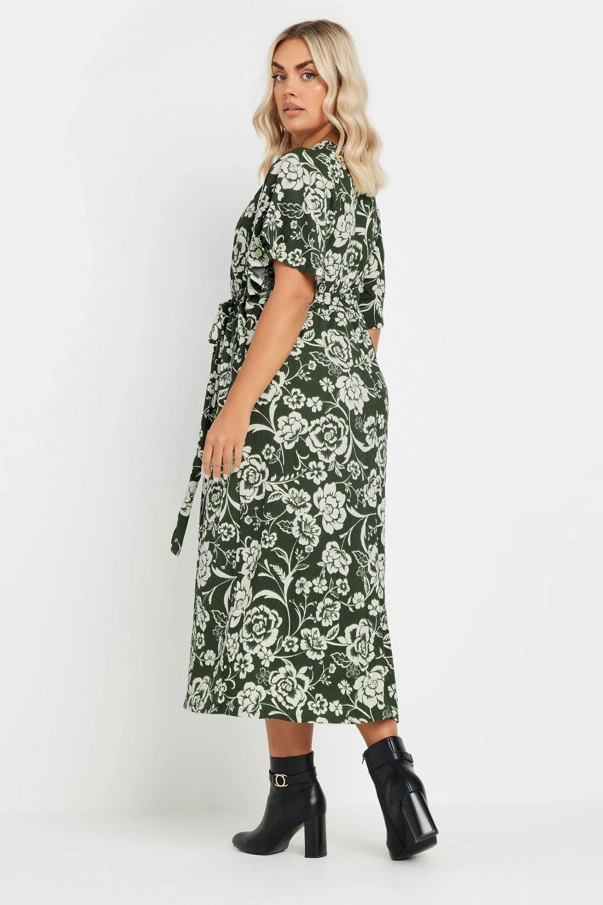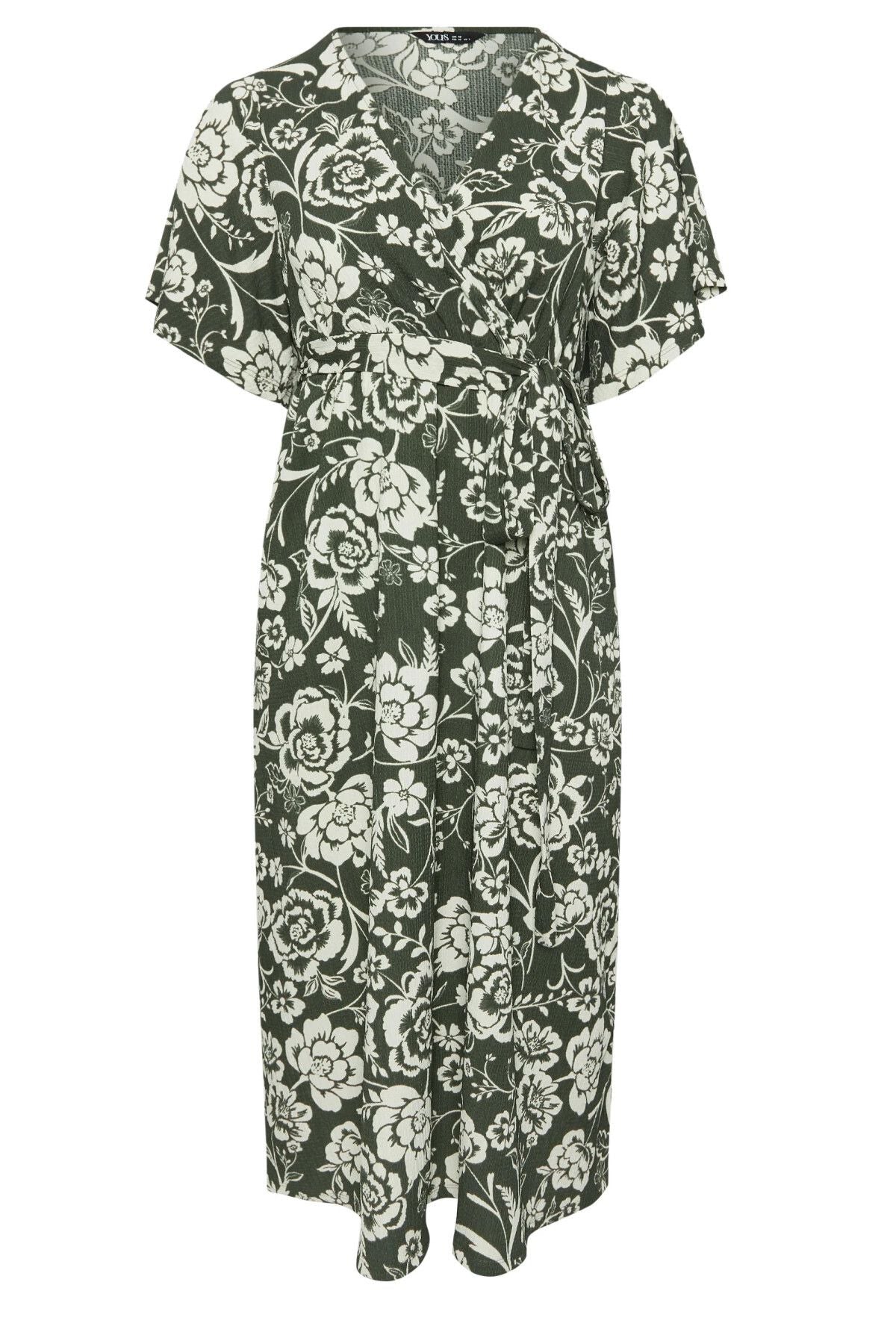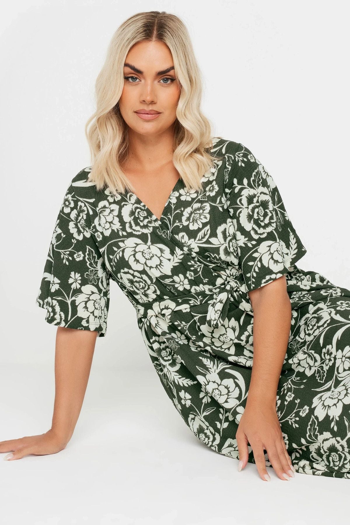Model Detayı: Çiçek desenli, dokulu yüzey, anvelop yaka, beli kuşaklı, kısa kol.