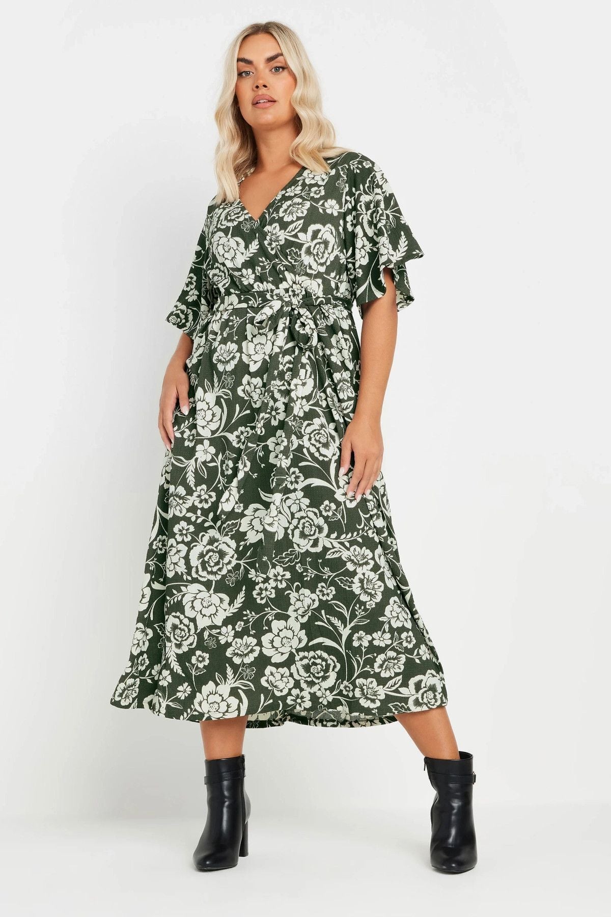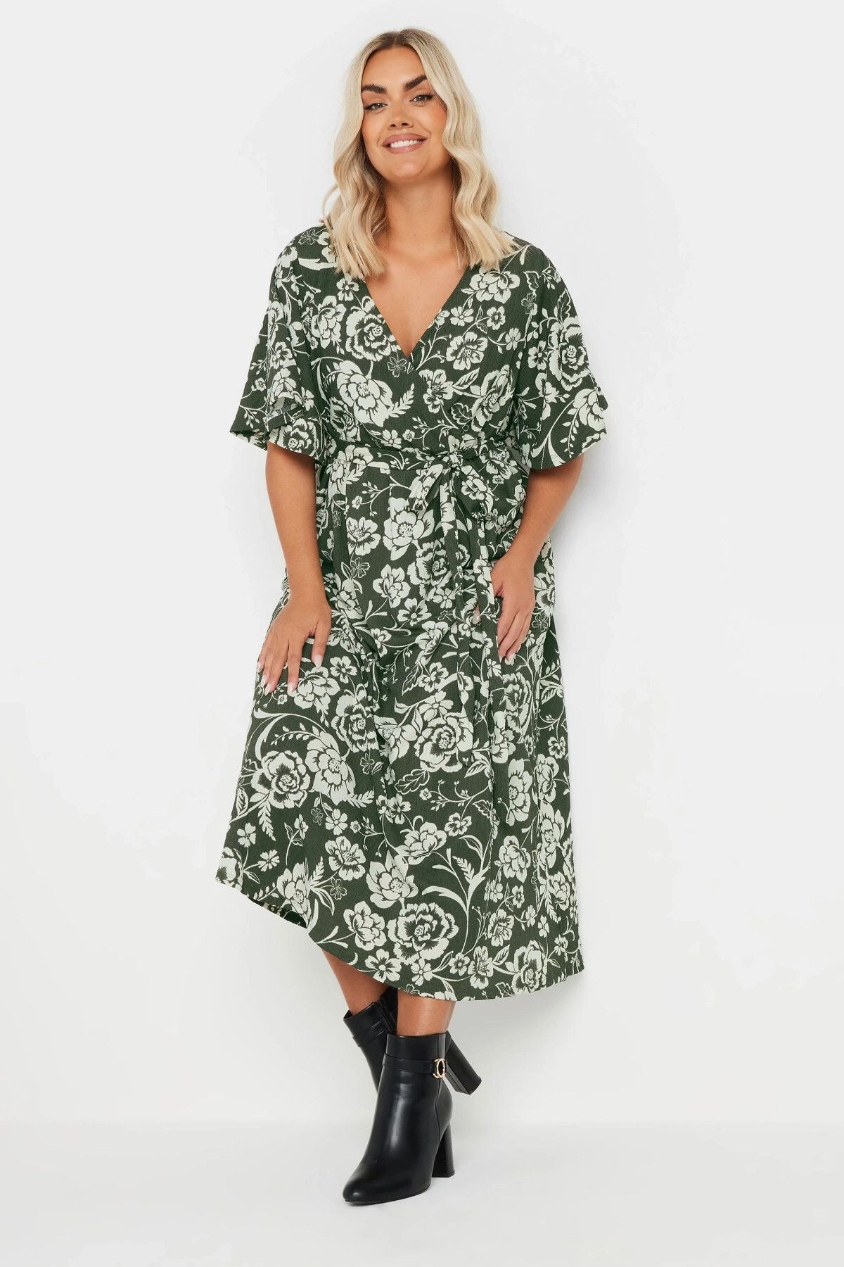 Büyük Beden Kısa Kollu V Yaka Kuşaklı Anvelop Elbise 137988