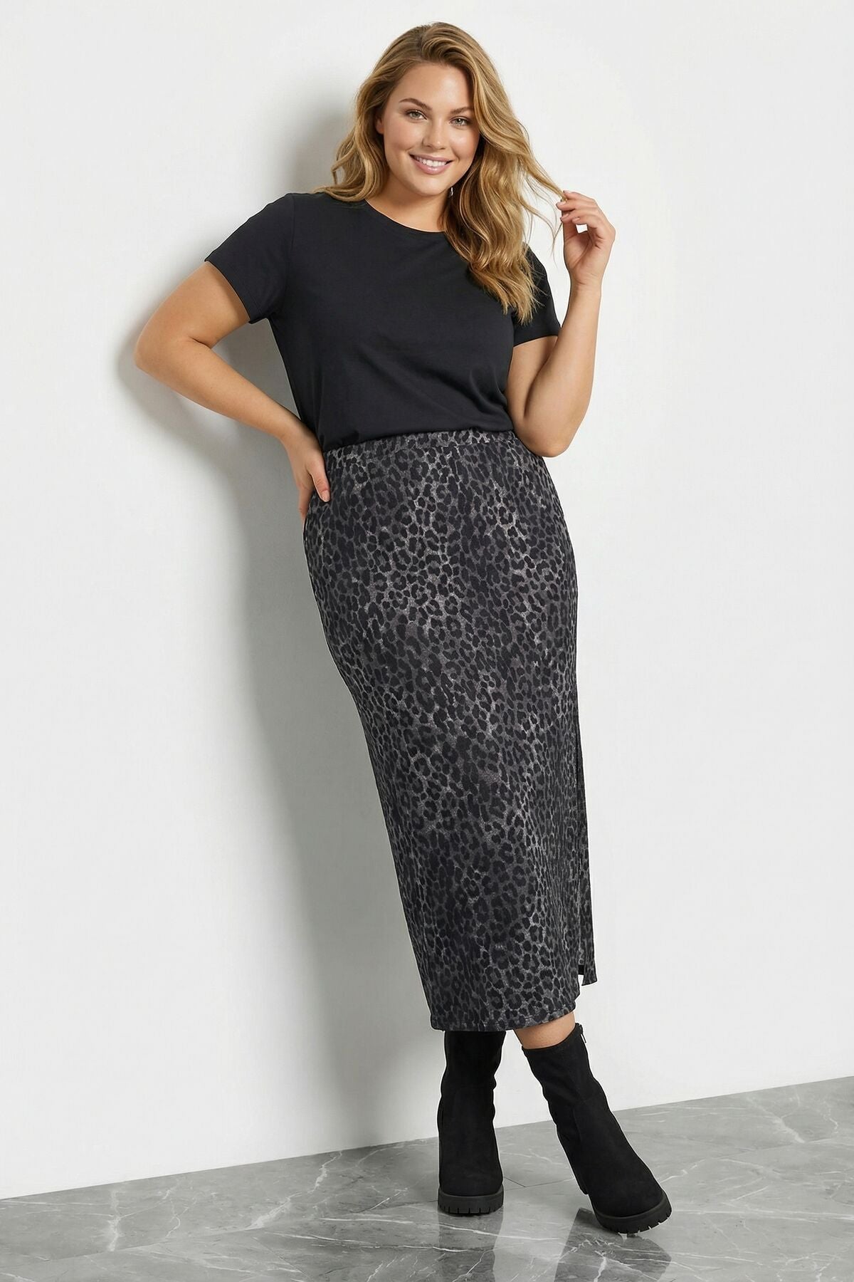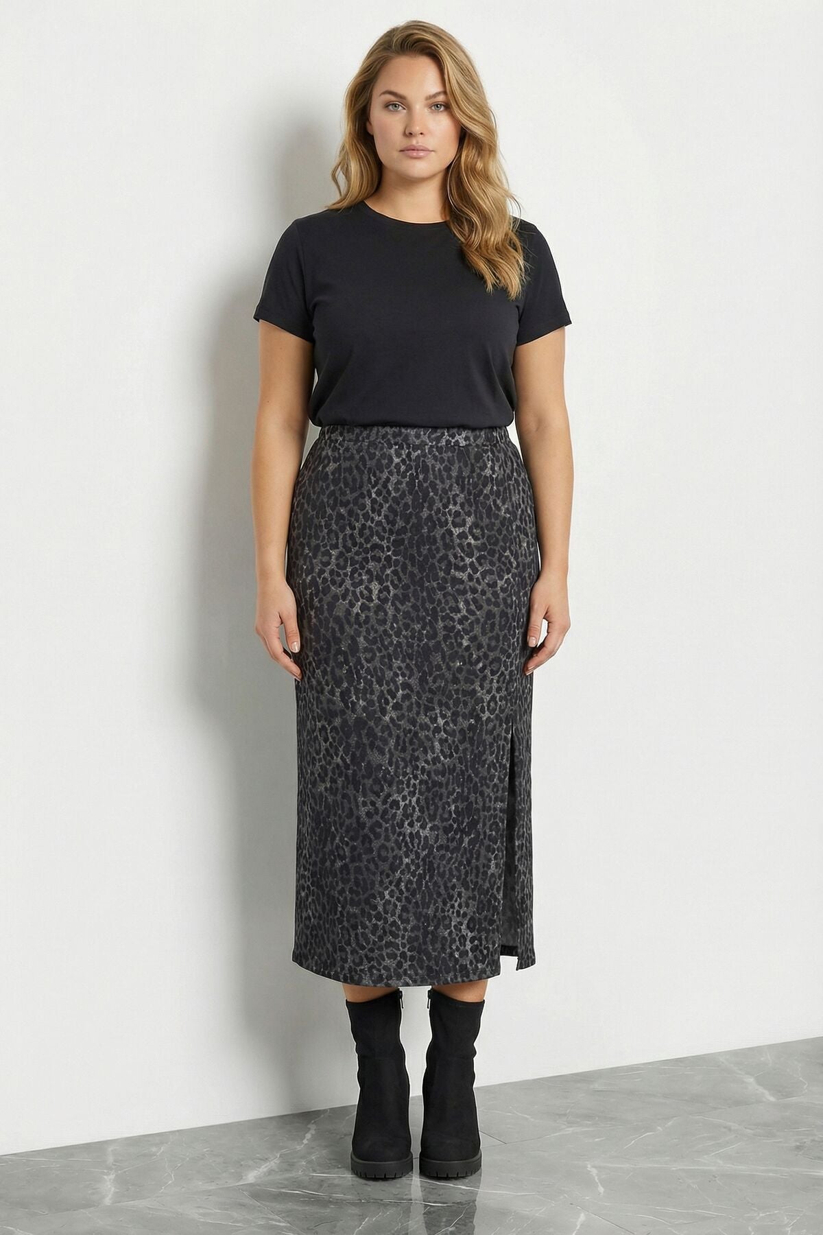 Stil Diva'nın en yeni parçası Büyük Beden Leopar Desenli Yırtmaçlı Kalem Etek ile gardırobunuza hareket katın! Hem şık hem de rahat olan bu etek, özel davetlerden günlük kullanıma kadar her ortamda size eşlik edecek. Leopar deseni ve yırtmaç detayı ile dikkatleri üzerinize çekerken, büyük beden kalıbı sayesinde konforunuzdan ödün vermeyeceksiniz.