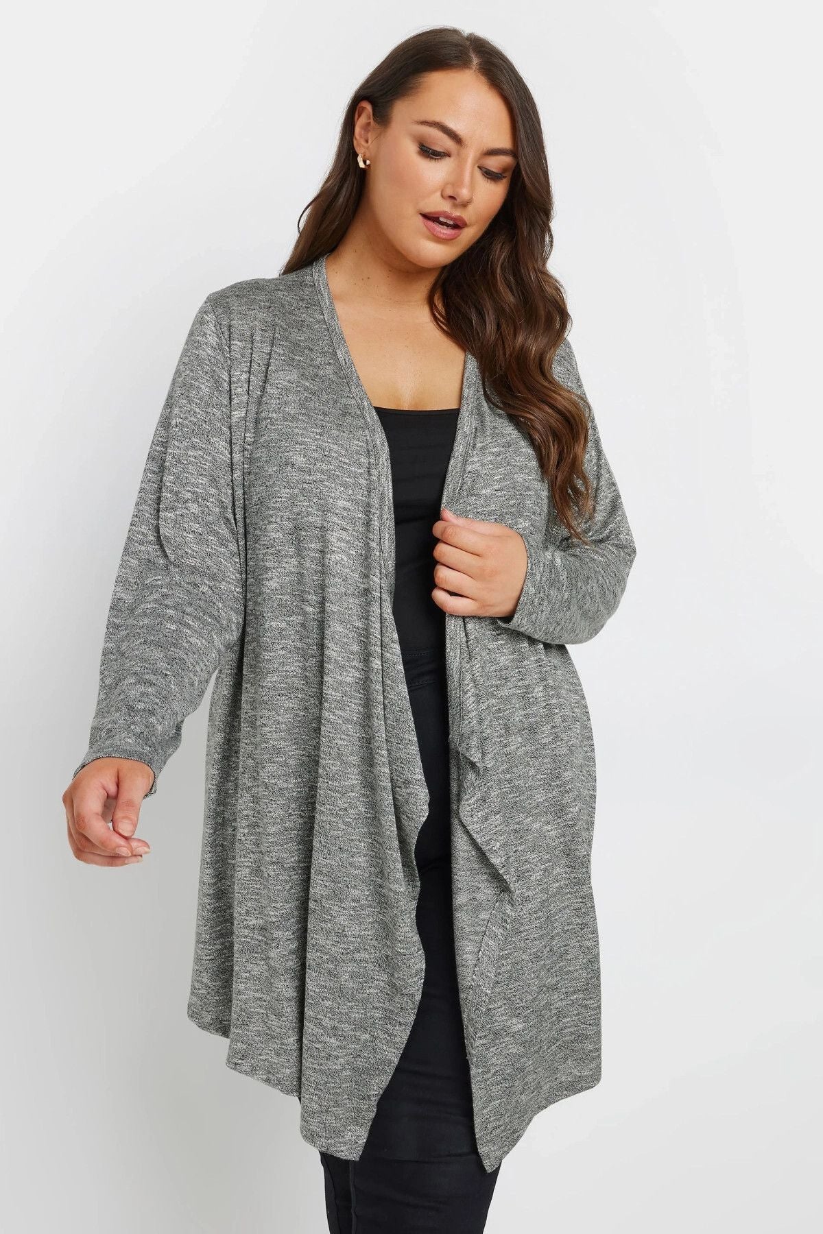 Büyük Beden Önü Kapamasız Uzun Kollu Asimetrik Kesim İnce Hırka 303637