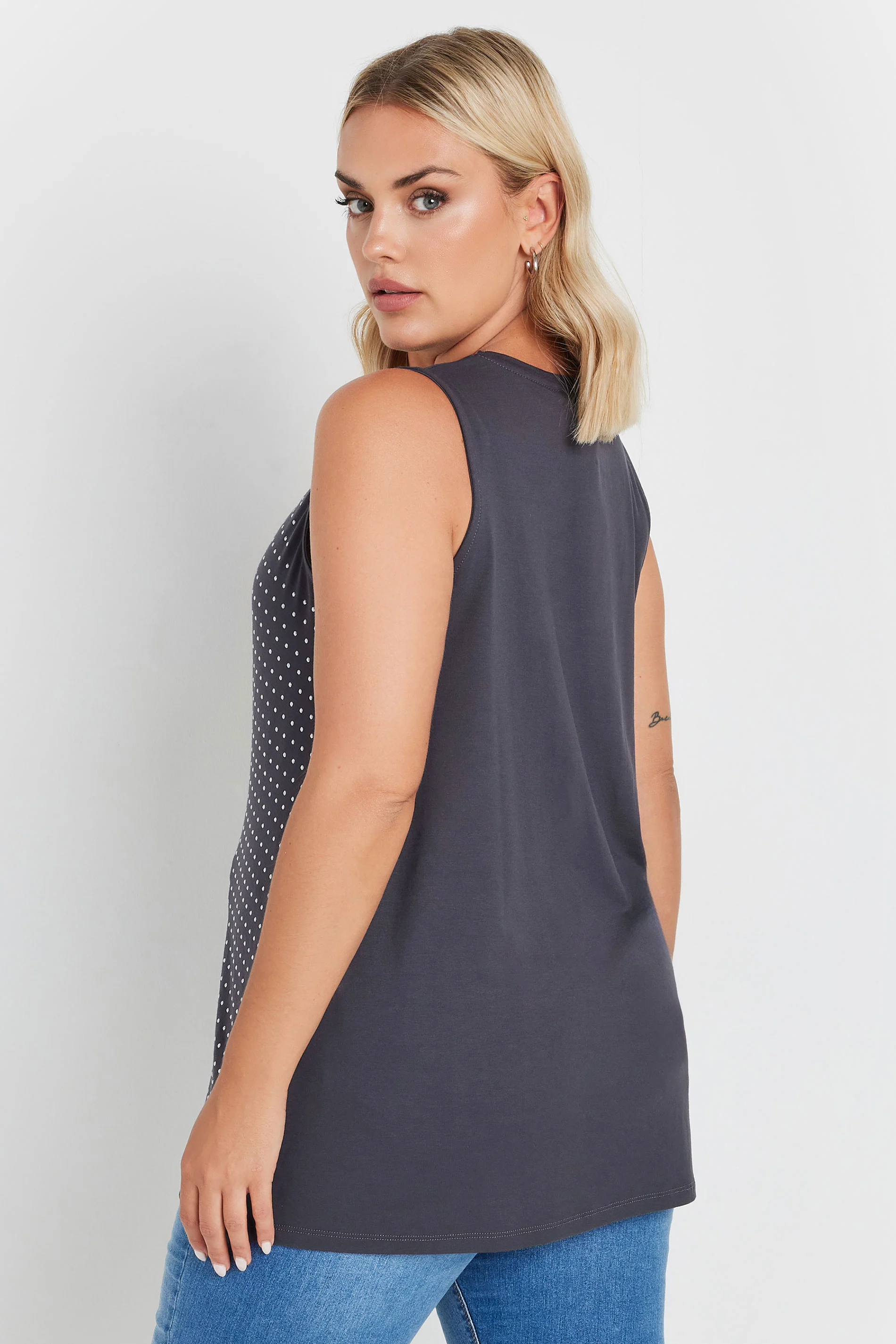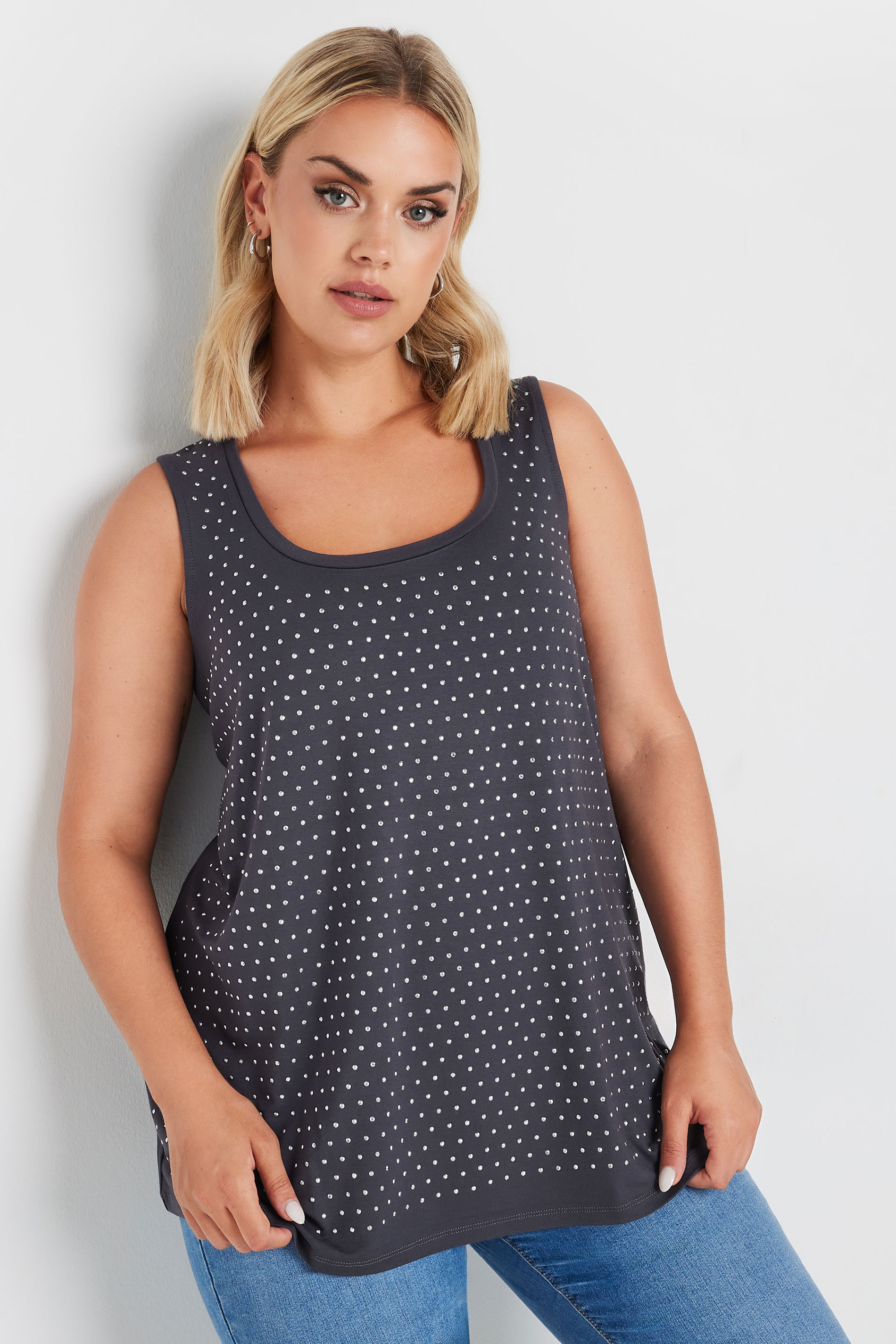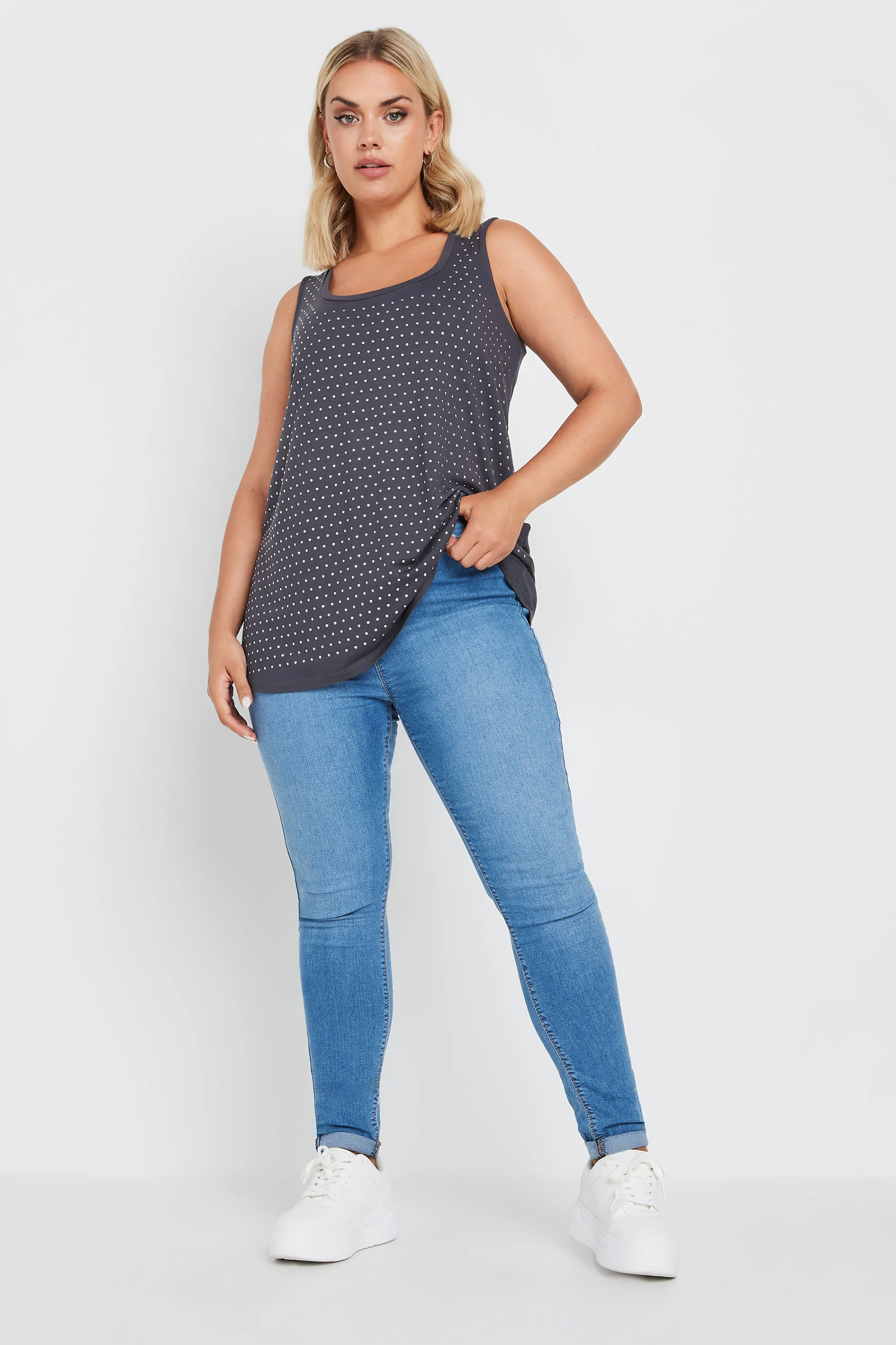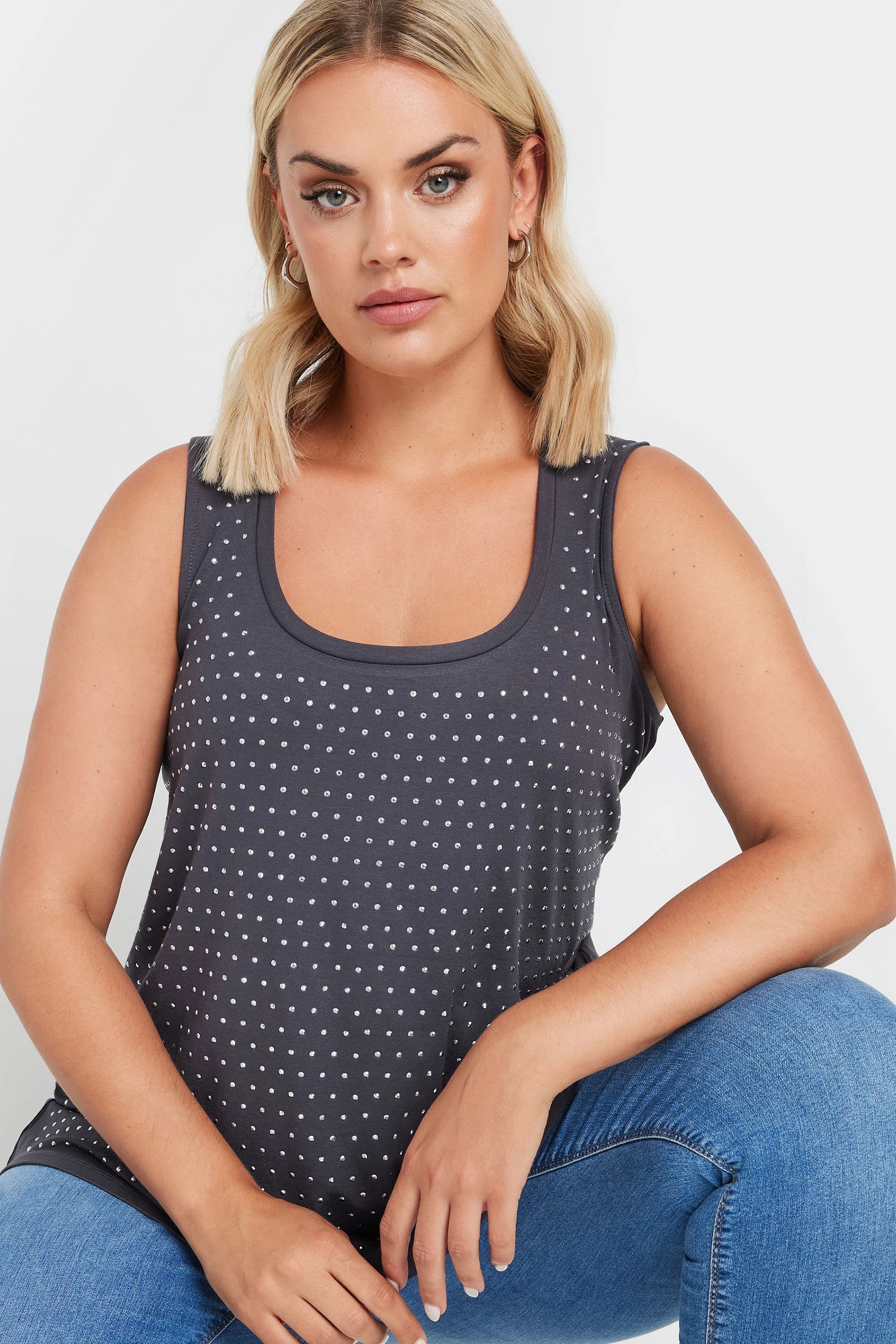 Moda Notu: Planların mı var? Kıyafetin bizde. Esnek jarse kumaştan üretilen bu çarpıcı zımbalı atlet, bisiklet yaka ve kolsuz bir stile sahiptir. O kadar çok yönlü ki, her şeyle giyebilirsiniz.