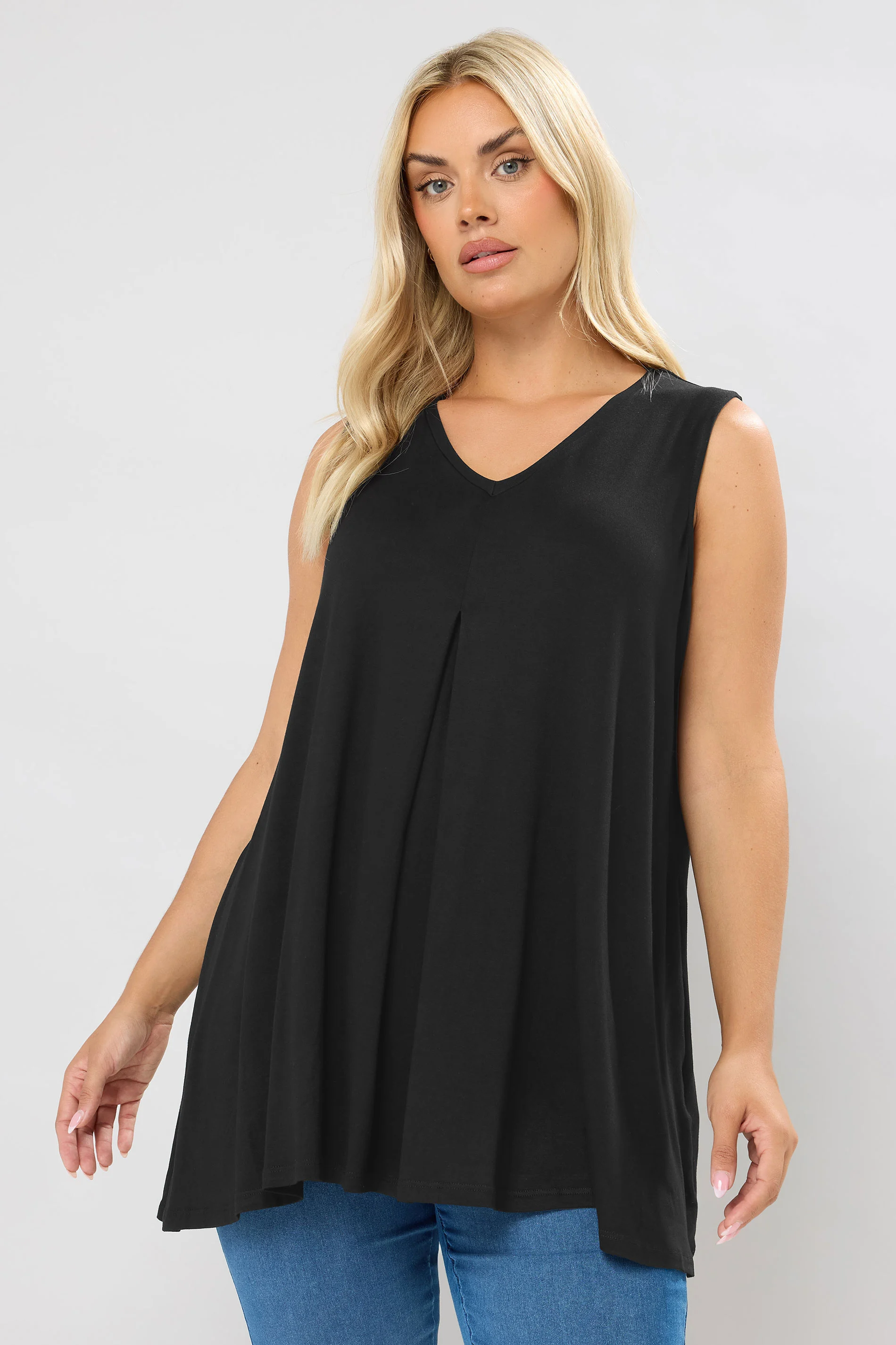 Model Detayı: Kolsuz, V Yaka, Uzun Model, Salaş Stil, Önü Pileli