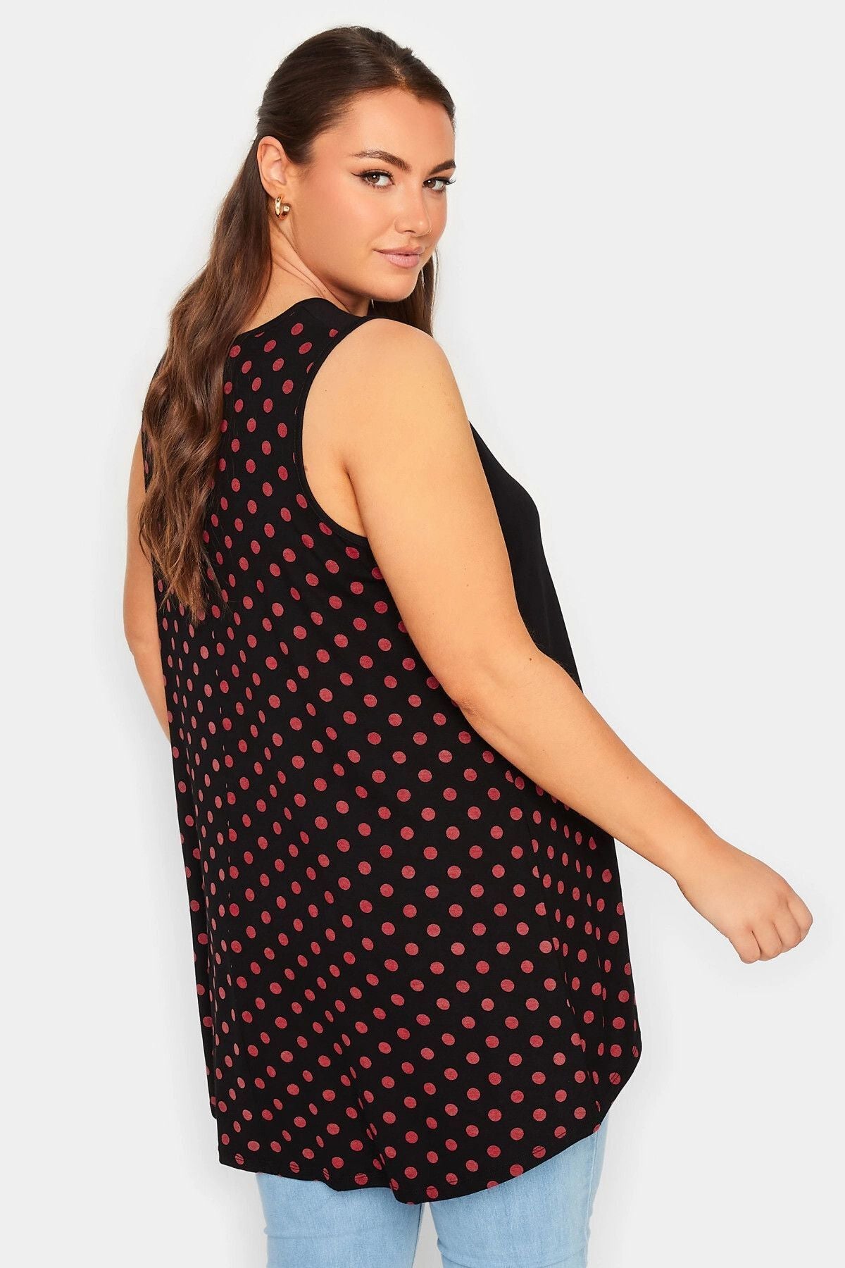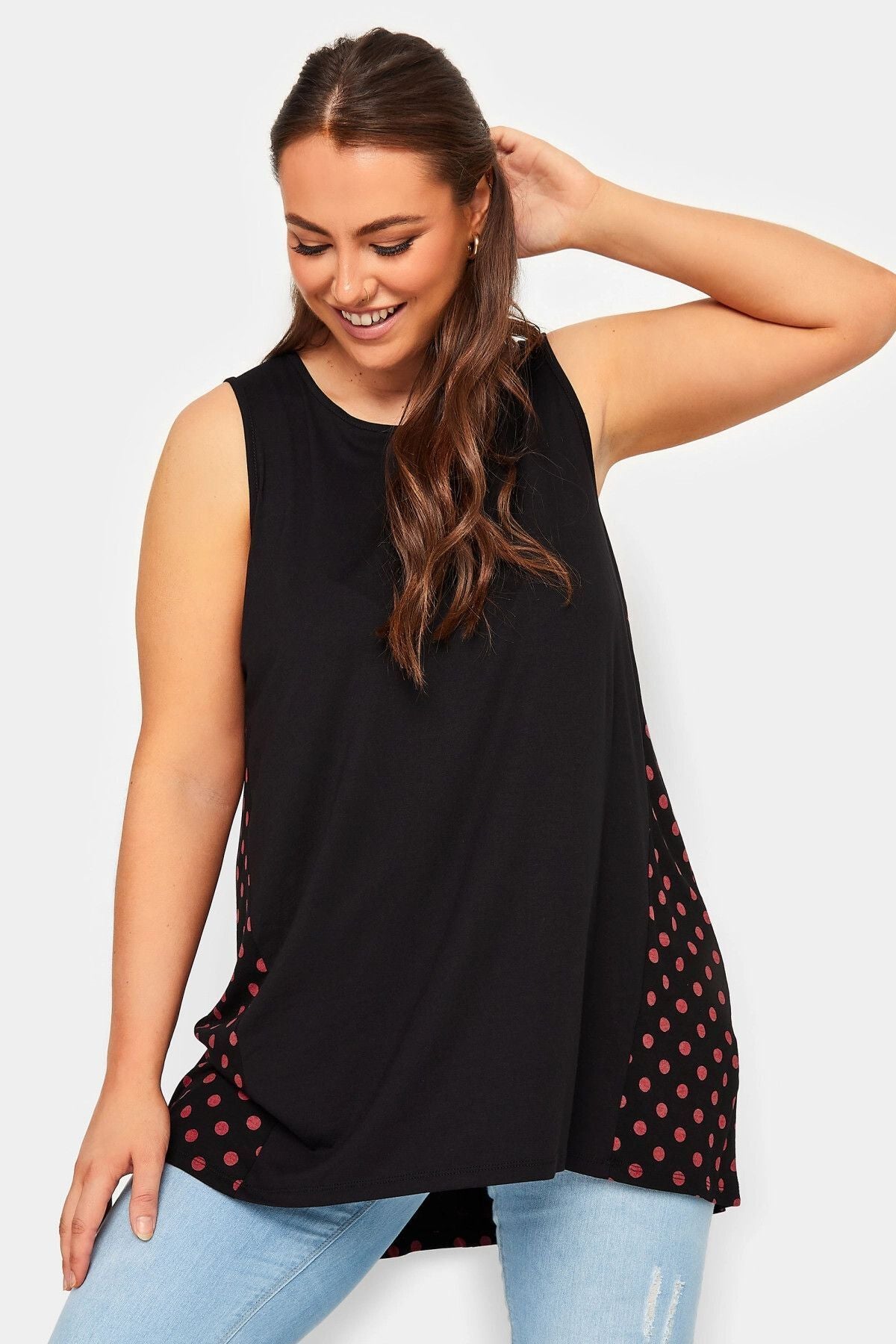 Büyük Beden Sırtı Puantiyeli Asimetrik Kesim Sıfır Kol Bluz 302254