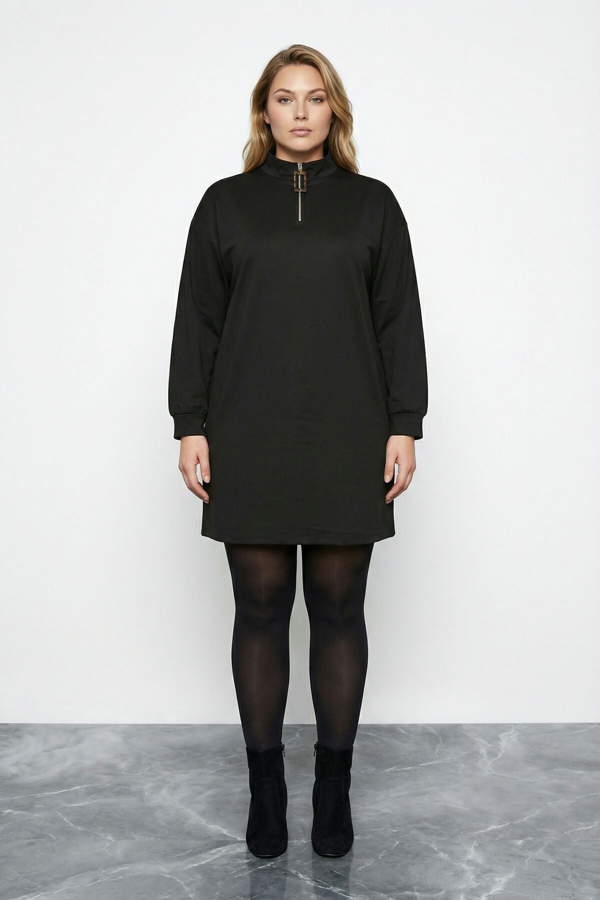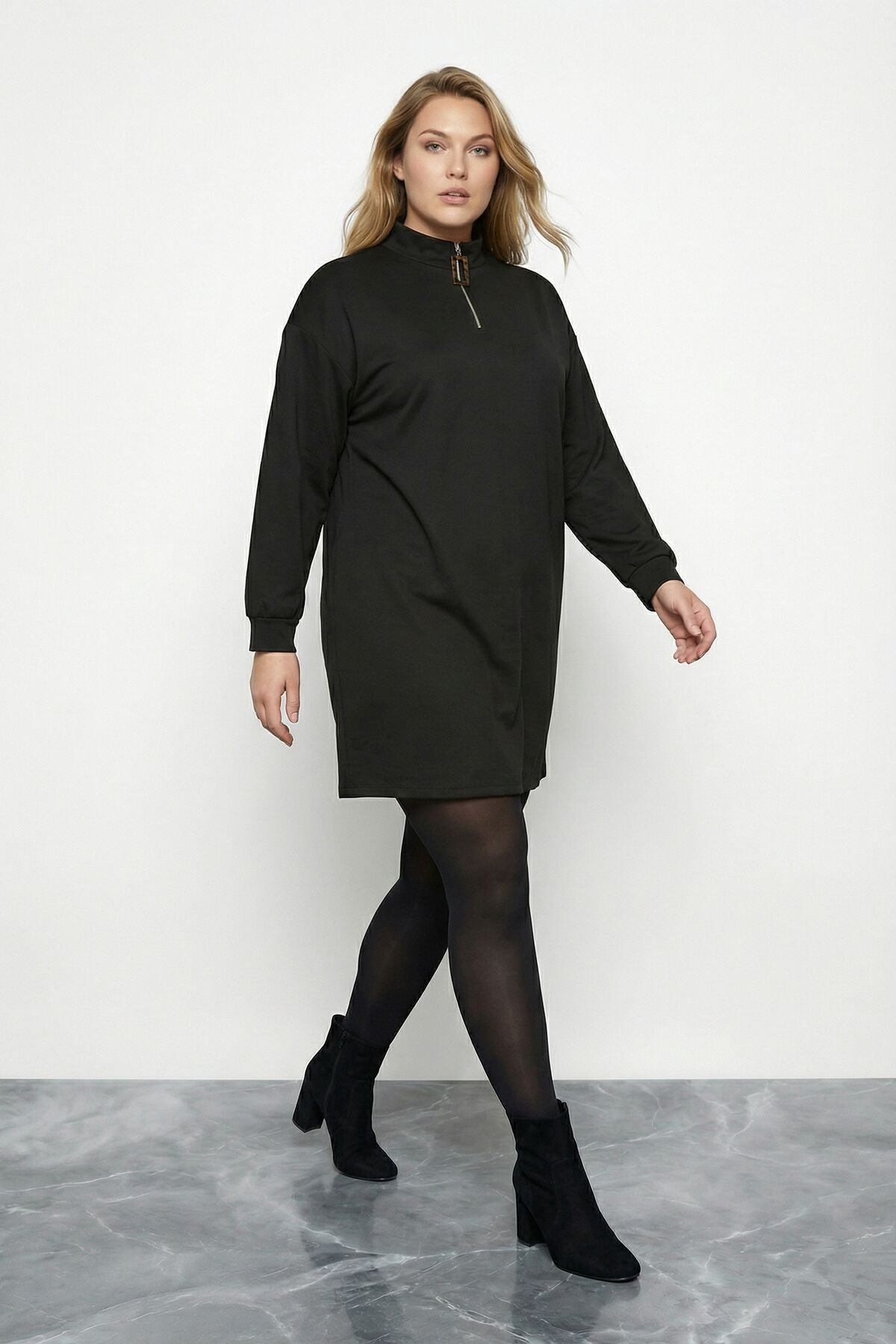Büyük Beden Siyah Fermuarlı Mini Elbise 304489