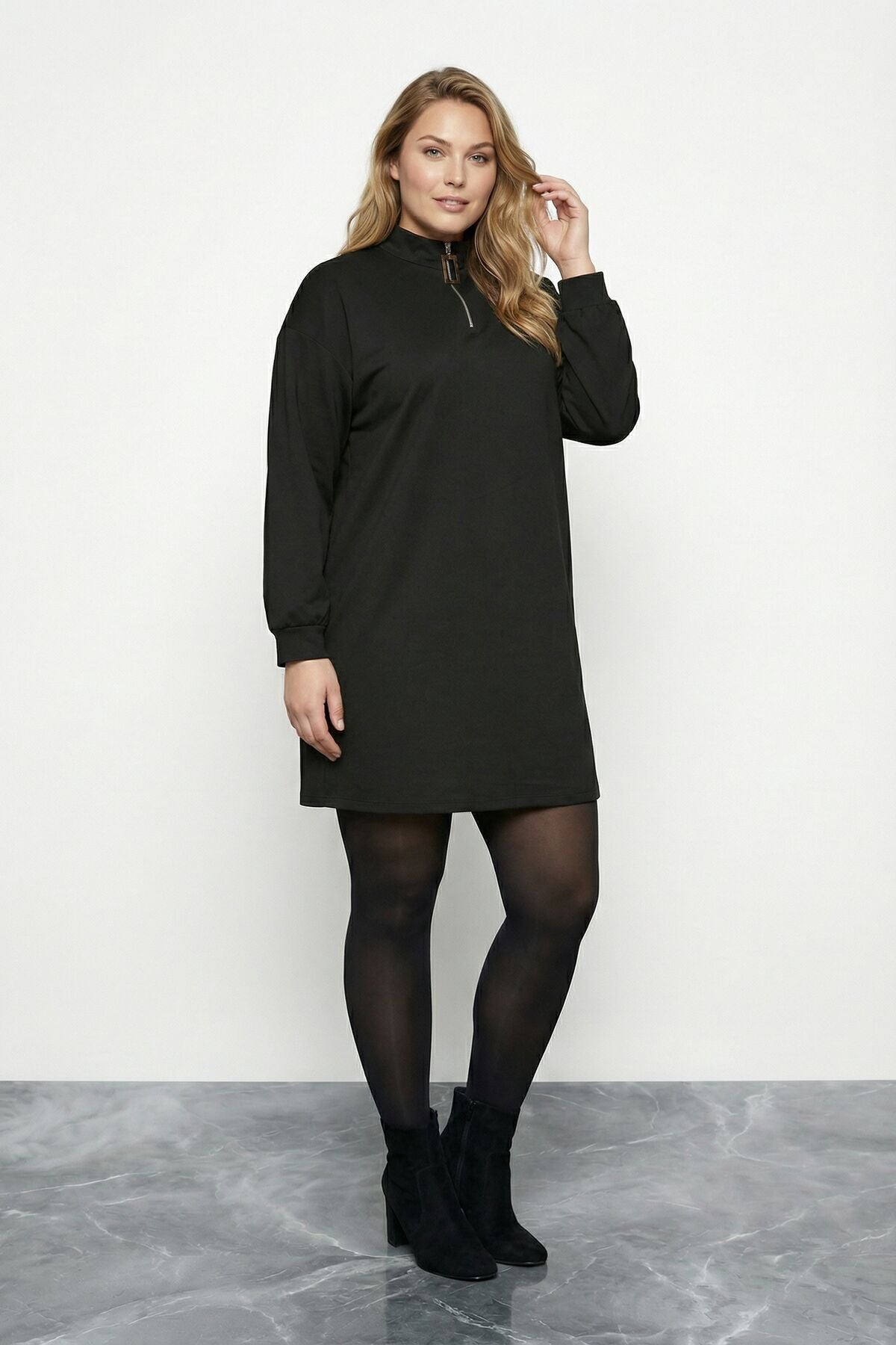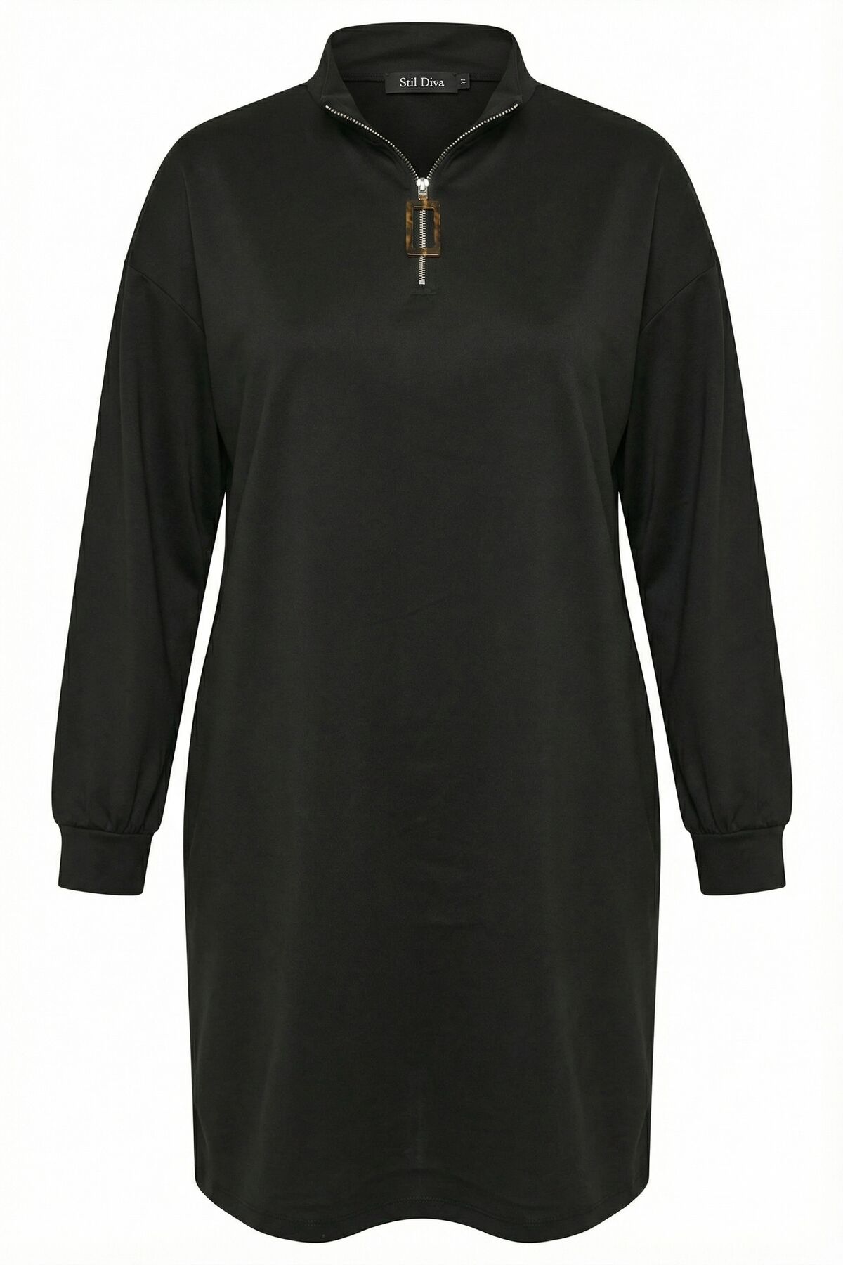 Stil Diva'nın en yeni büyük beden elbise koleksiyonundan siyah fermuarlı mini elbise ile tarzını konuştur! Bu şık ve modern elbise, fermuarlı yaka detayı ve rahat kalıbı ile hem günlük kullanım hem de özel günler için ideal. Siyahın asaletini ve mini elbisenin çekiciliğini bir araya getiren bu parçayı kaçırma!