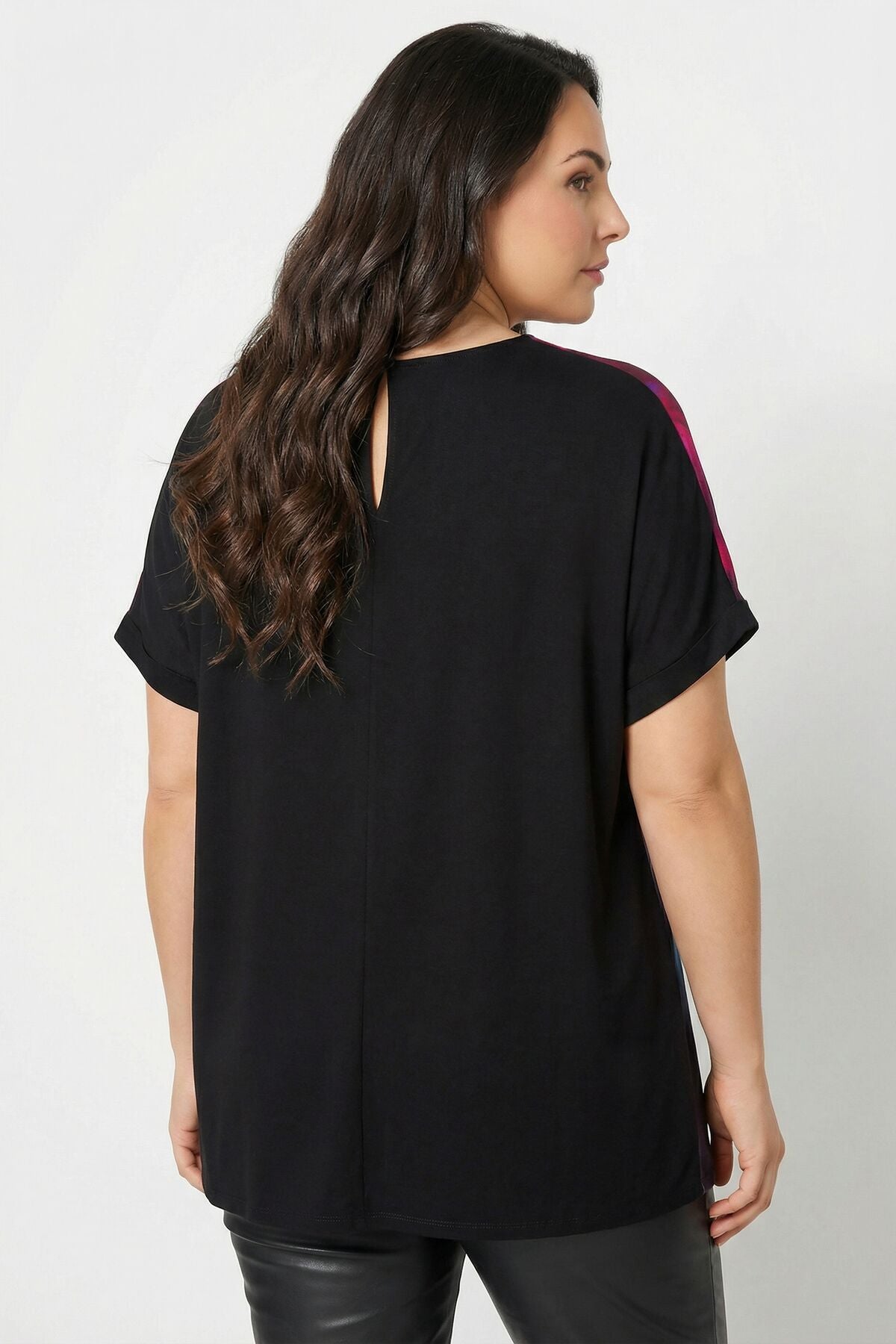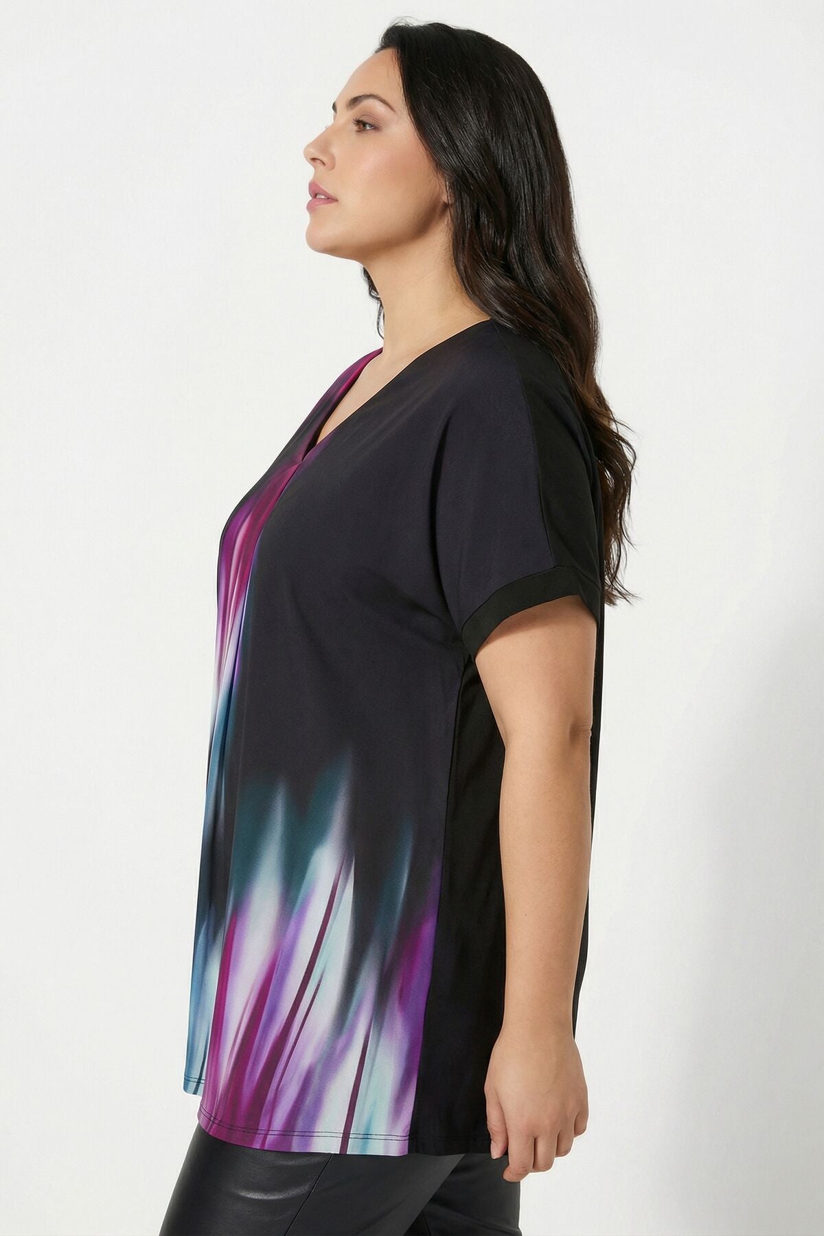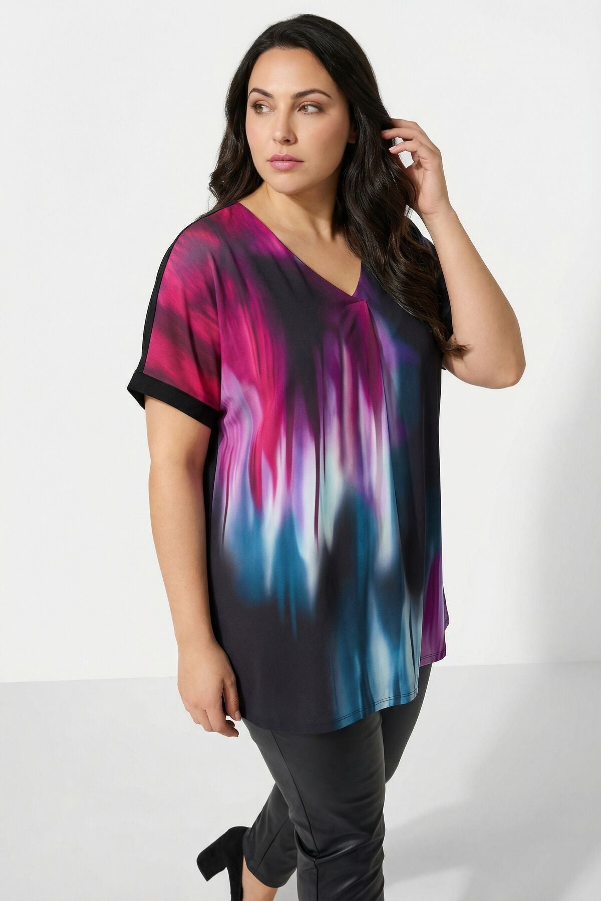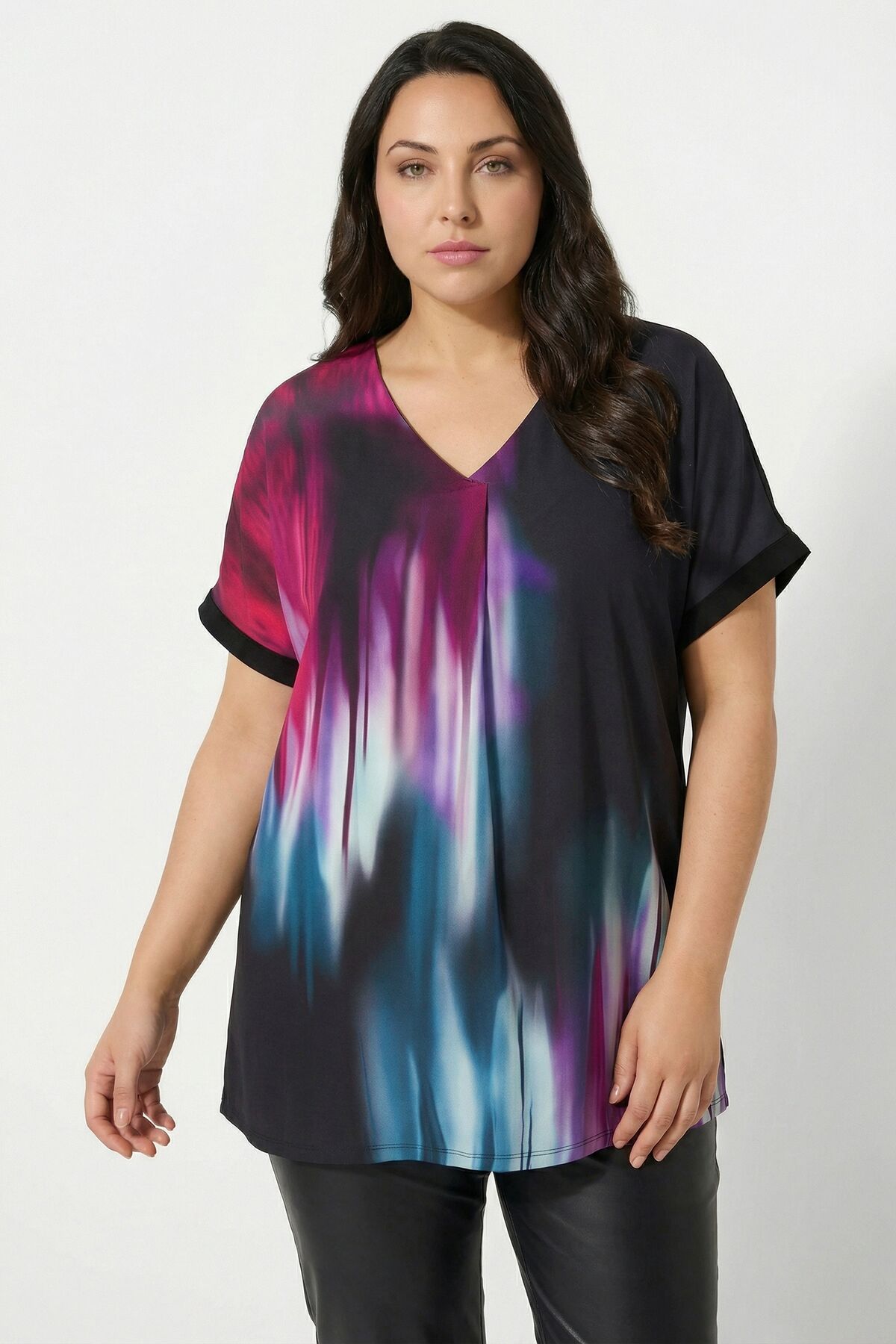 Büyük Beden Siyah Pembe Soyut Desenli V Yaka Bluz 616438