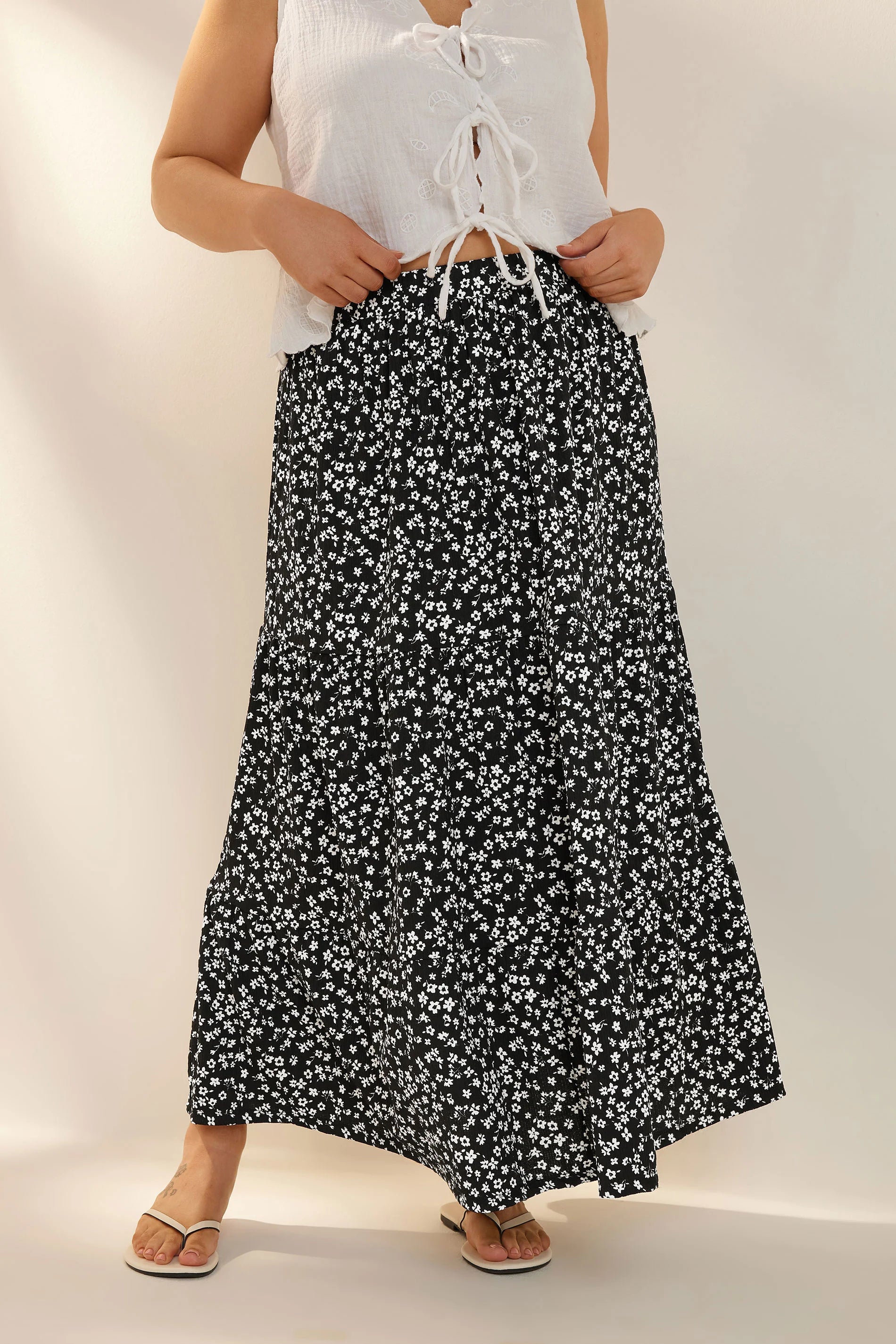 Bu sezon gardırobunuzu şirin desenlerle renklendirin! Karşınızda yeni çıtır çiçek desenli midaxi eteğimiz. Rahat dokuma kumaşı, konforlu lastikli beli ve hareketli katmanlı tasarımı ile hem şık hem de kullanışlıdır. Basic bir tişört ve spor ayakkabılarınızla kolayca kombinleyerek gündelik stilinizi bir üst seviyeye taşıyın. Serin havalarda triko bir kazak ve botlarla da harika görünecektir.