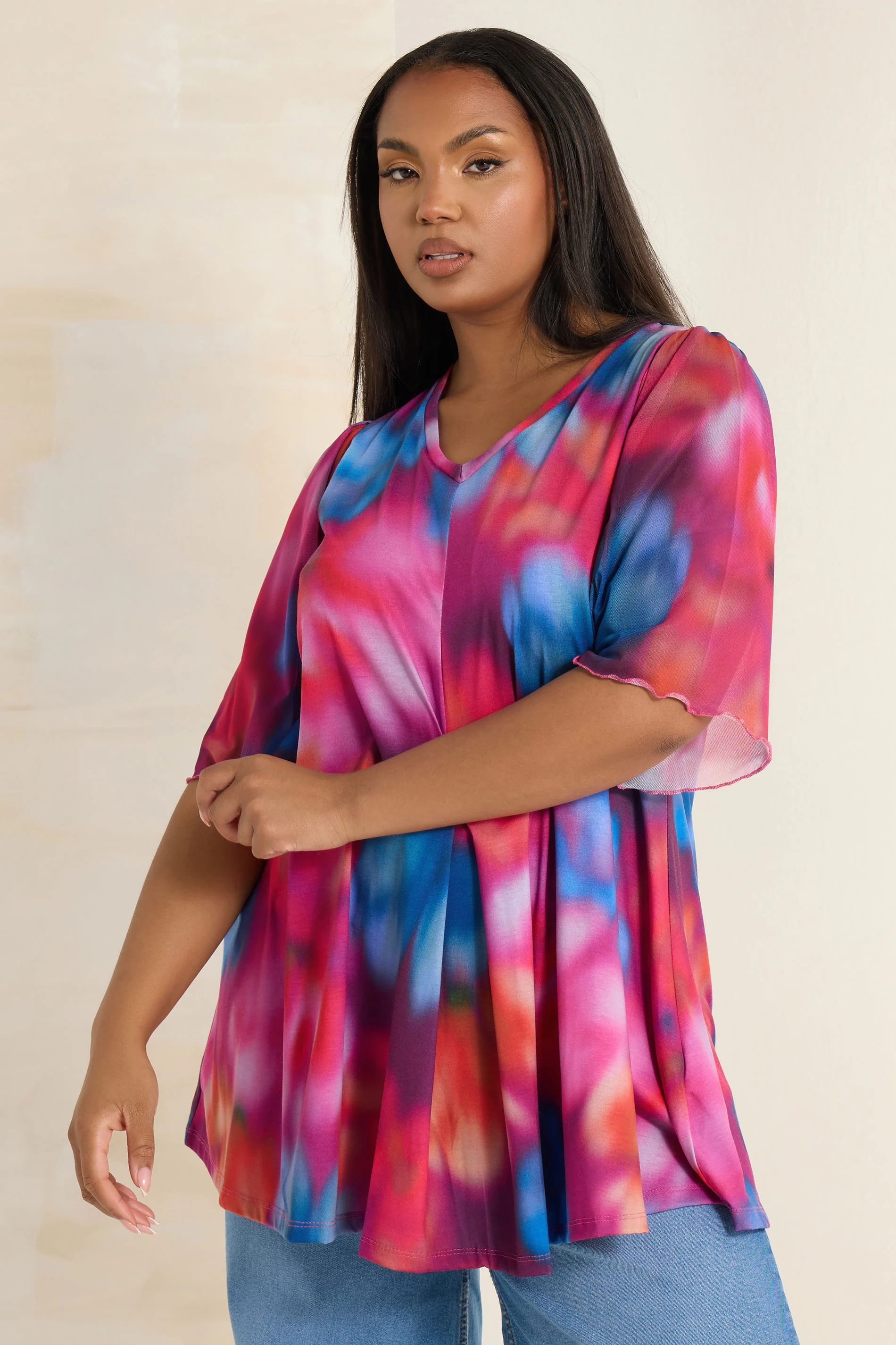 • Model Detayı: Soyut Desenli, Kısa Kollu, Salaş Model, Önü Pileli, V Yaka