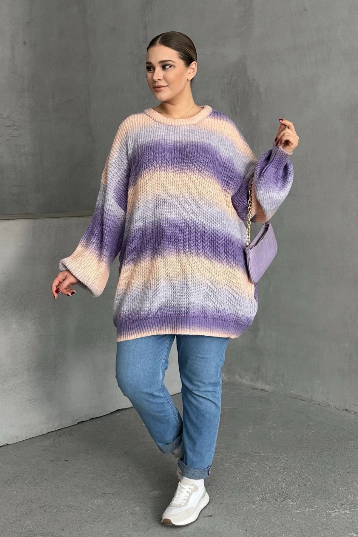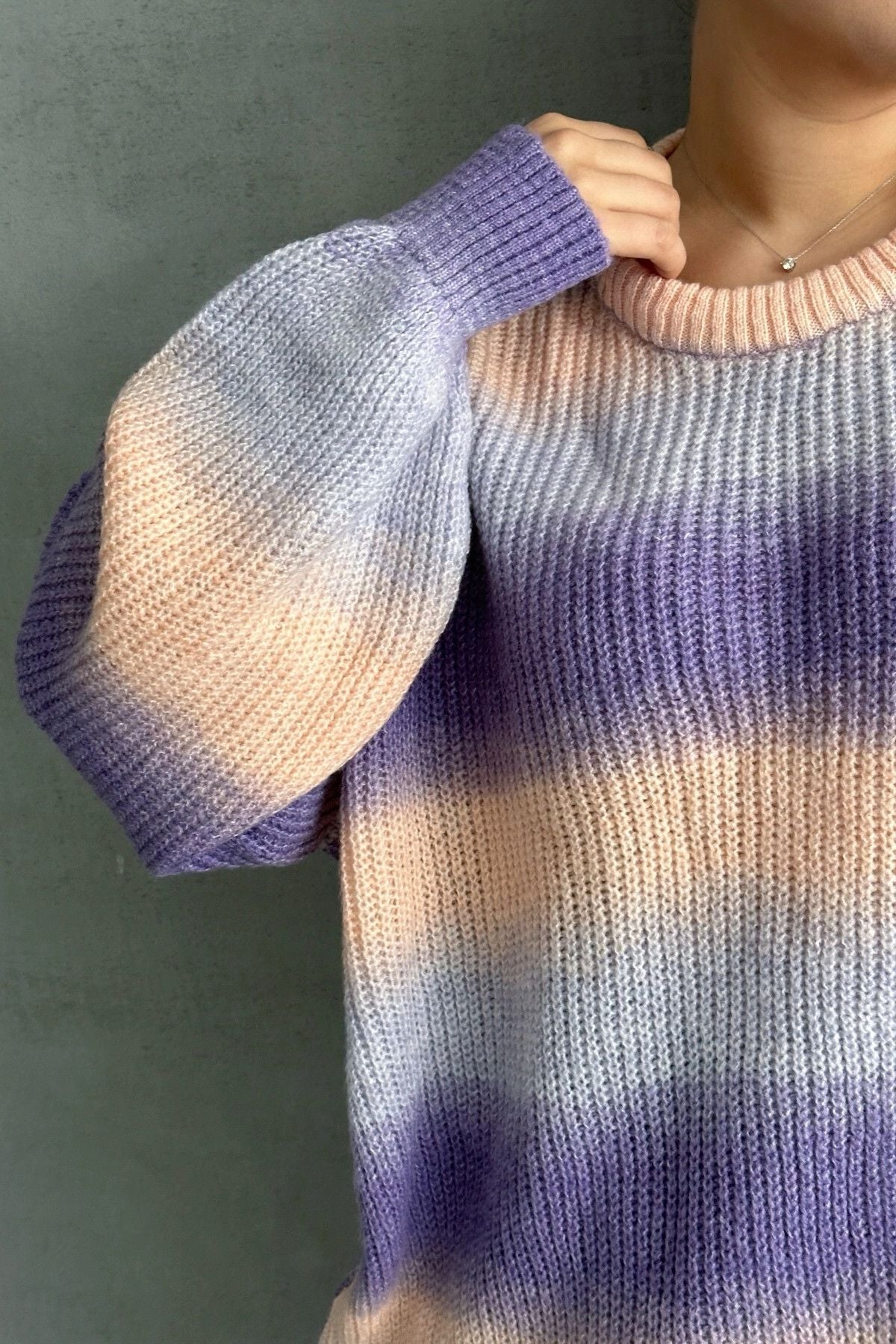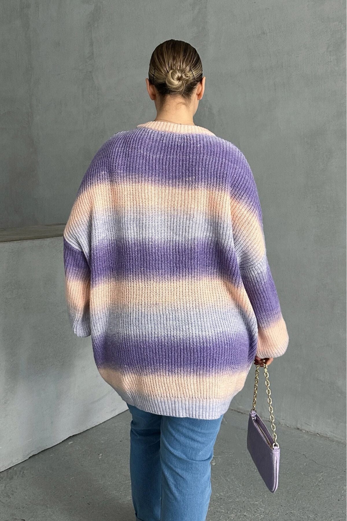 Model Detayı: Bisiklet yaka, uzun kollu, ombré geçişli desen, oversize kesim