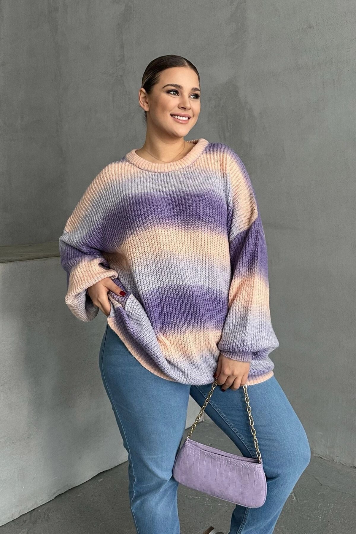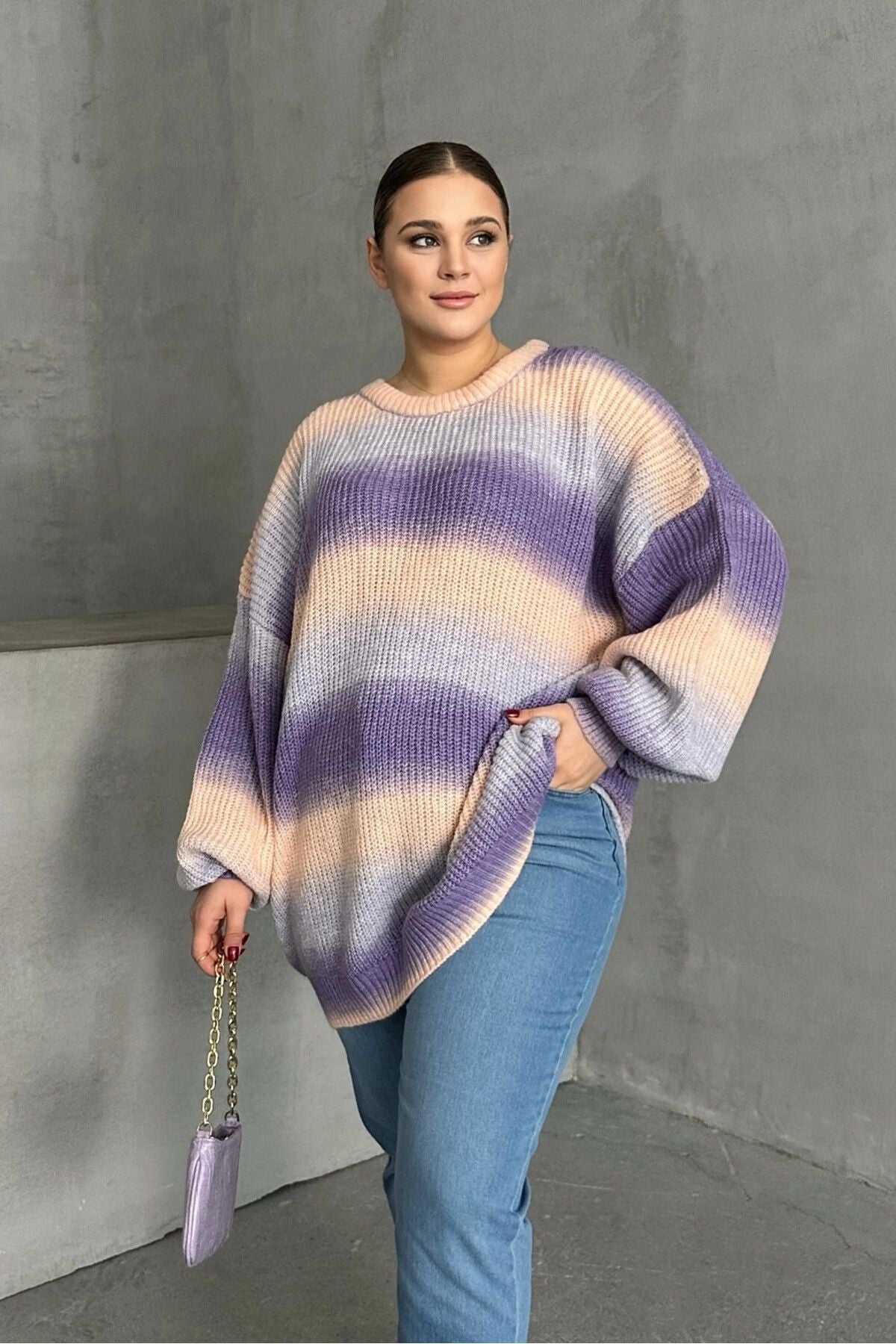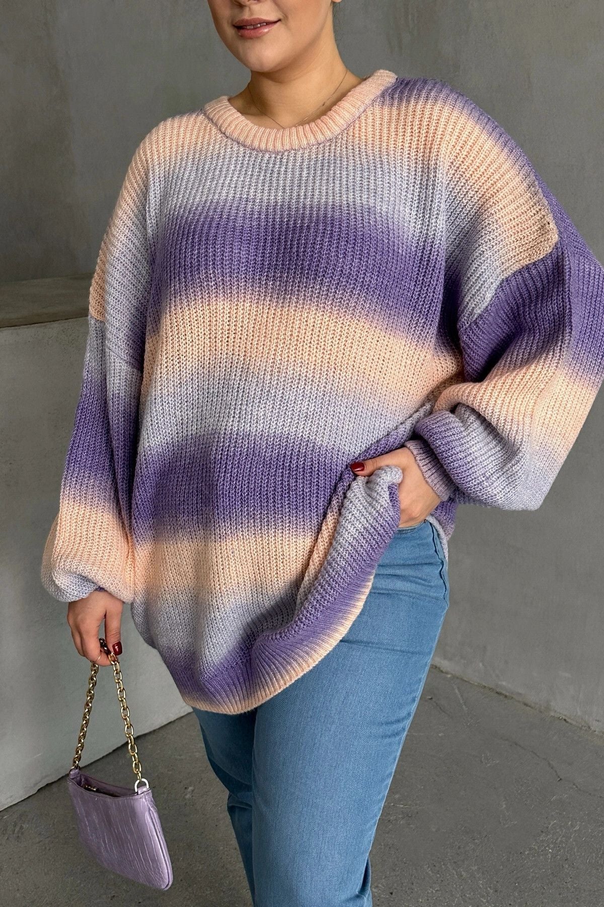Model Detayı: Bisiklet yaka, uzun kollu, ombré geçişli desen, oversize kesim