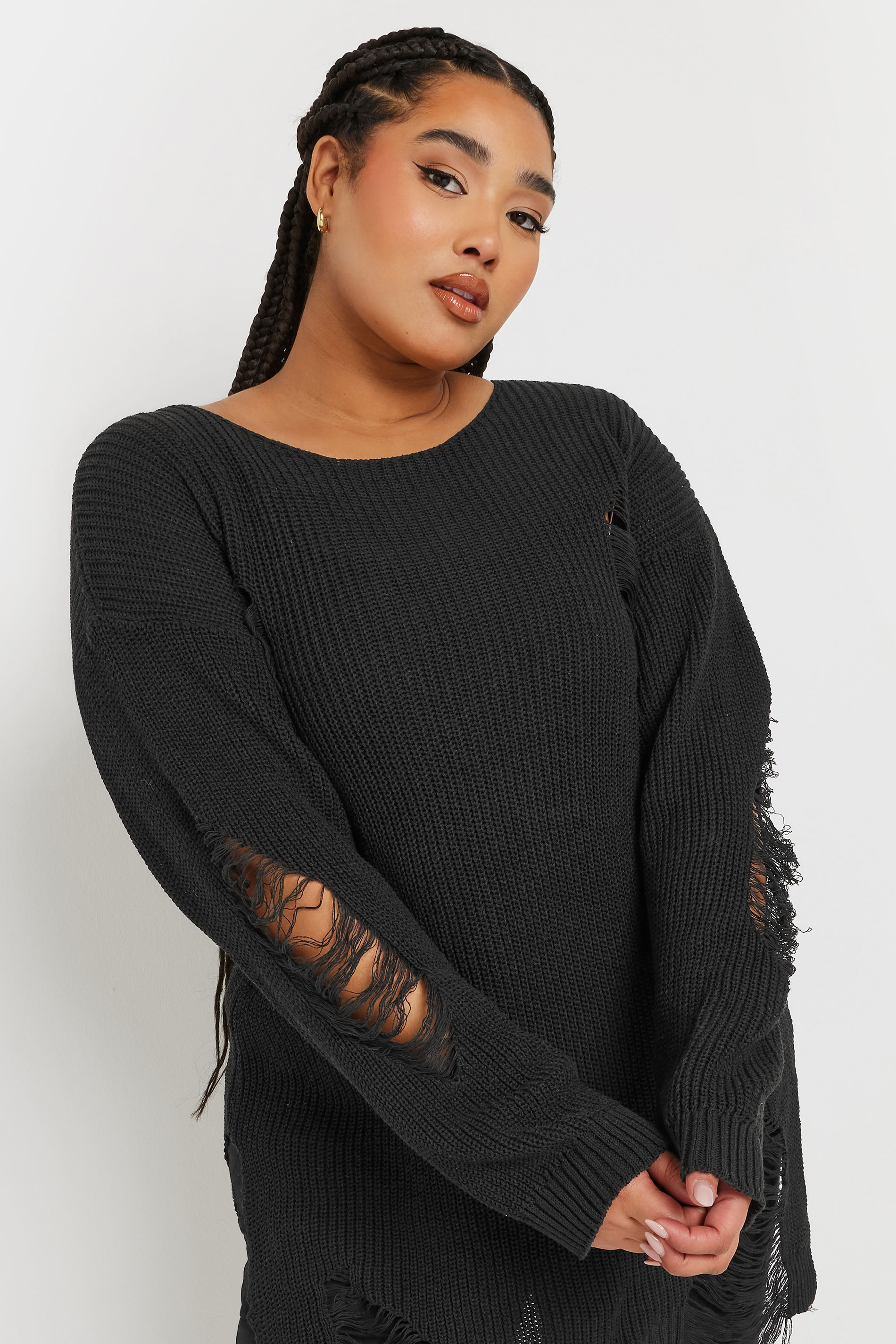 Büyük Beden Uzun Kollu Bisiklet Yaka Yırtık Detaylı Triko Kazak 303582