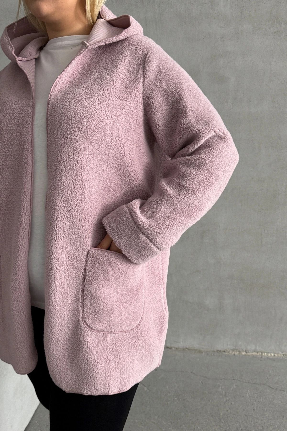 • Yumuşak dokusuyla konfor sunan bu peluş ceket, uzun kollu ve kapüşonlu tasarımıyla soğuk günlerde sıcacık bir tercih. Önü kapamasız yapısı ve kullanışlı cepleriyle hem şıklık hem de pratiklik sağlar. Günlük kombinlerinize hem rahatlık hem de tarz katacak ideal bir seçenek!